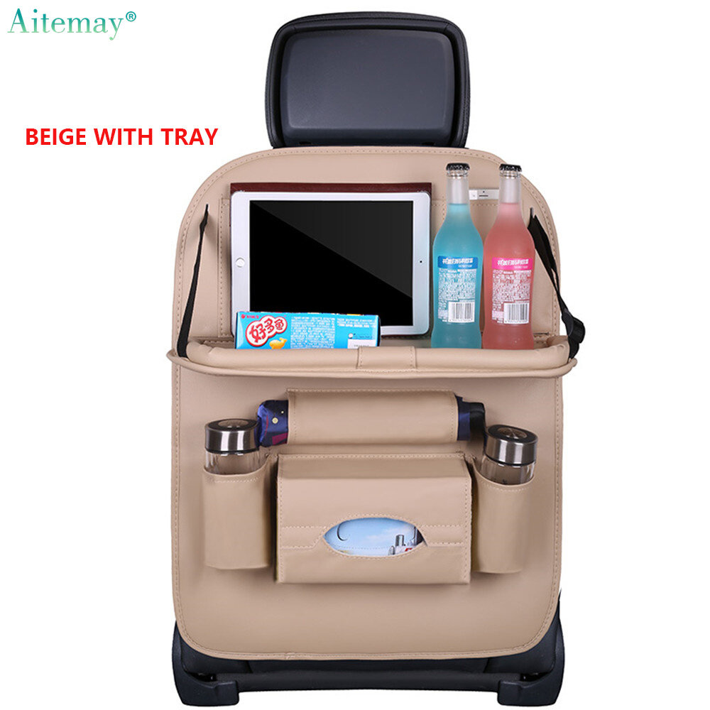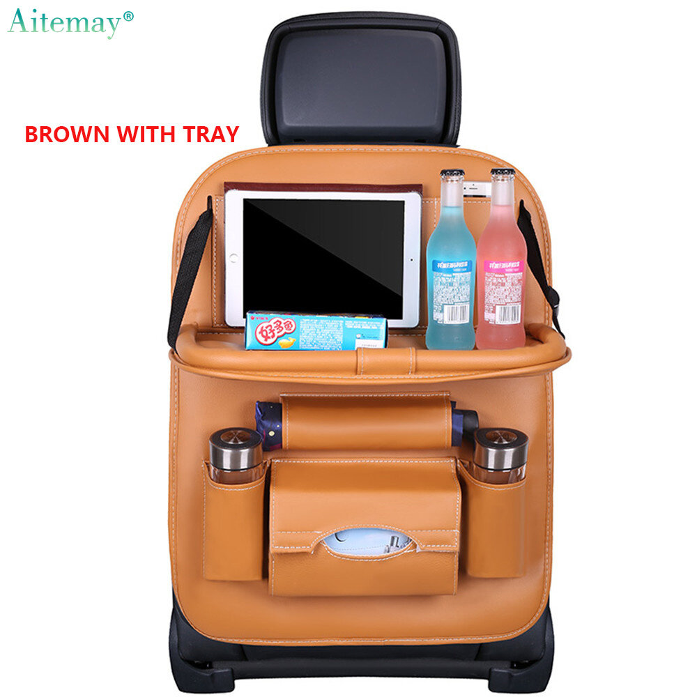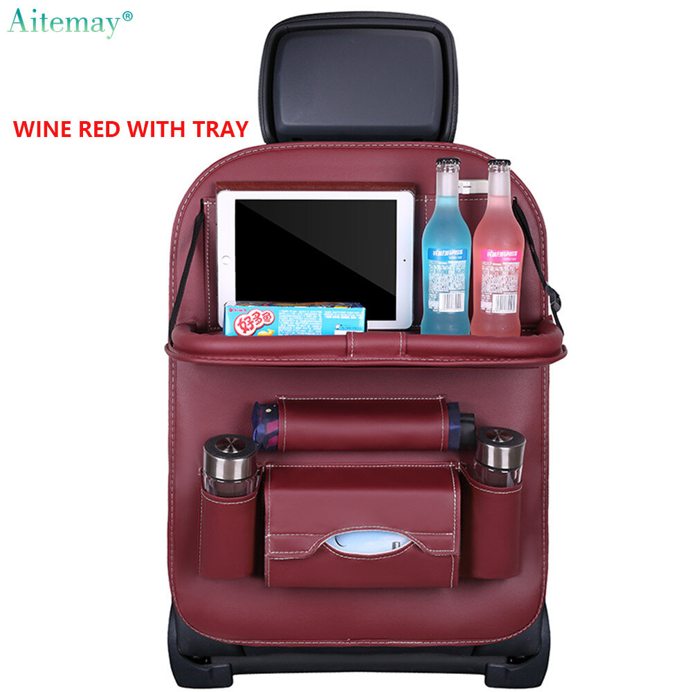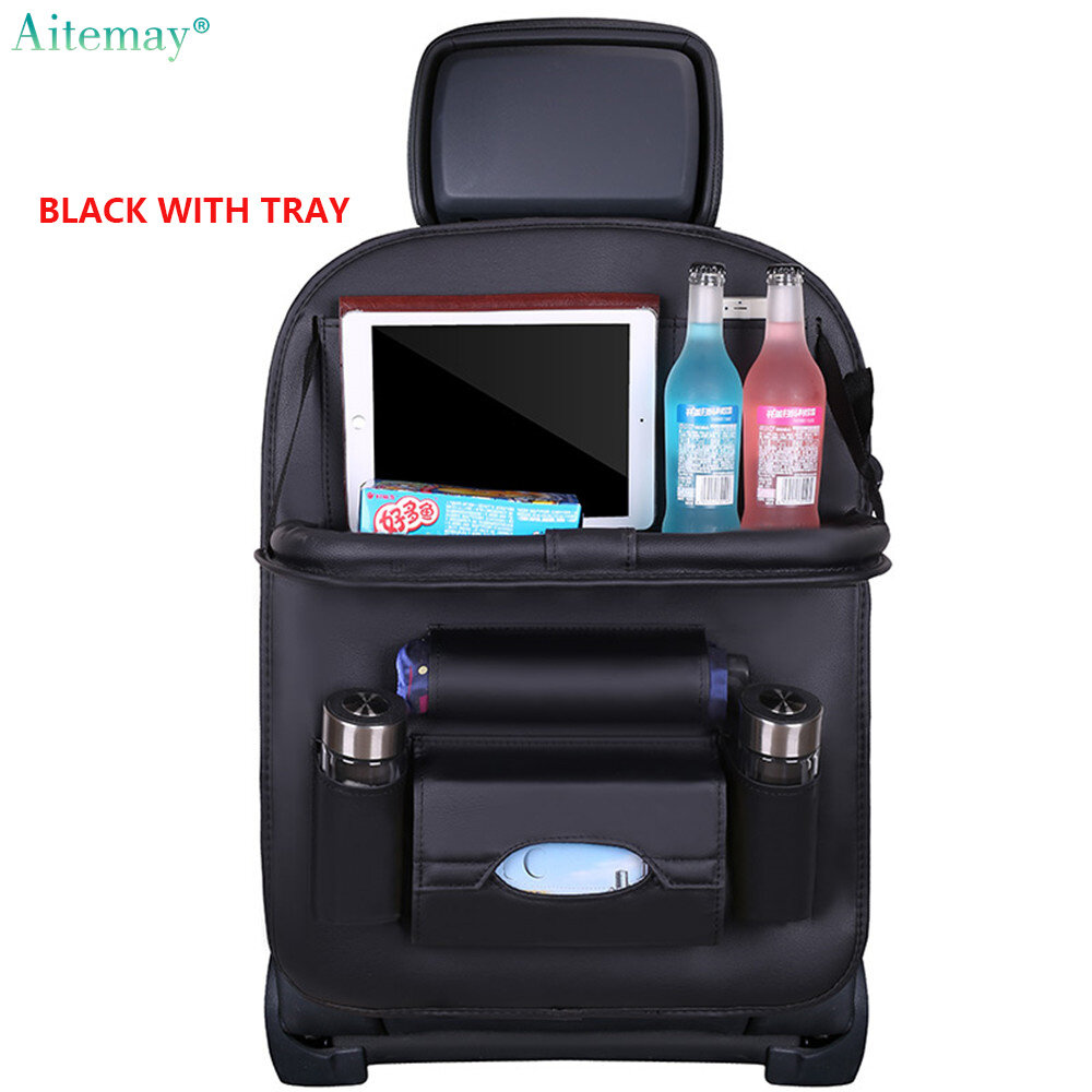 Aitemay Pu Leather Pad Bag Car Seat Back Organizer Foldable Table Tray Travel Storage Bag Foldable Dining Table Car Seat Storage Bag
