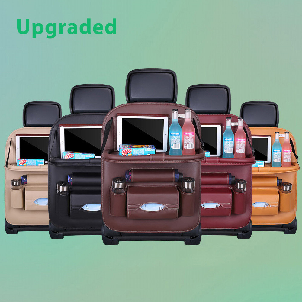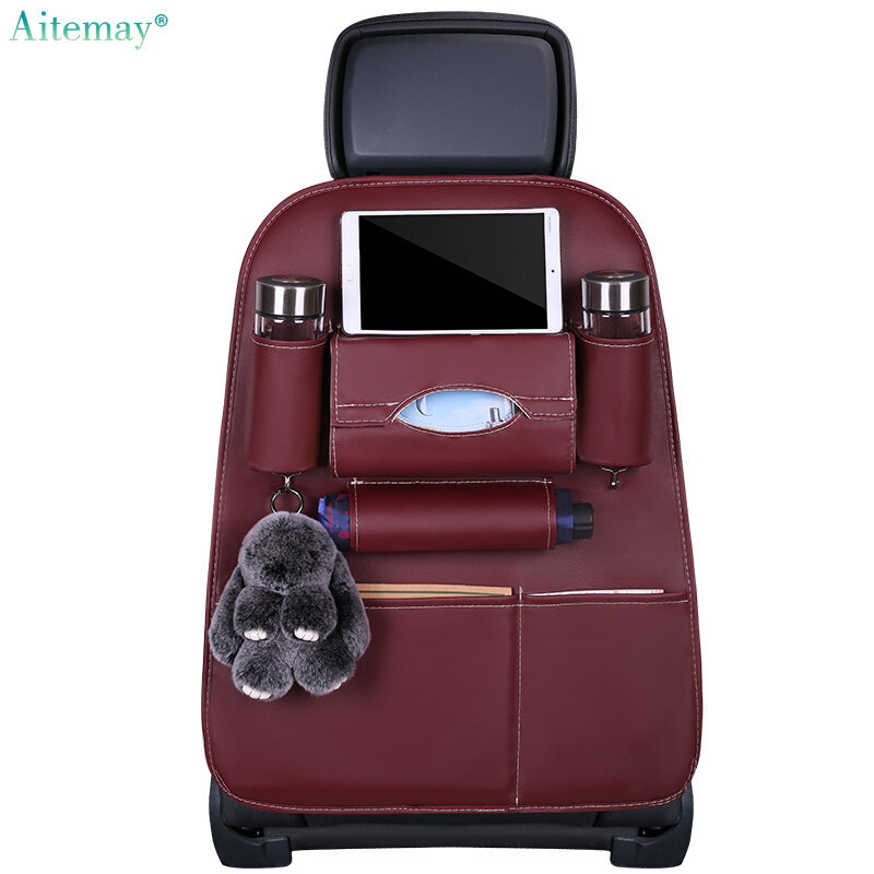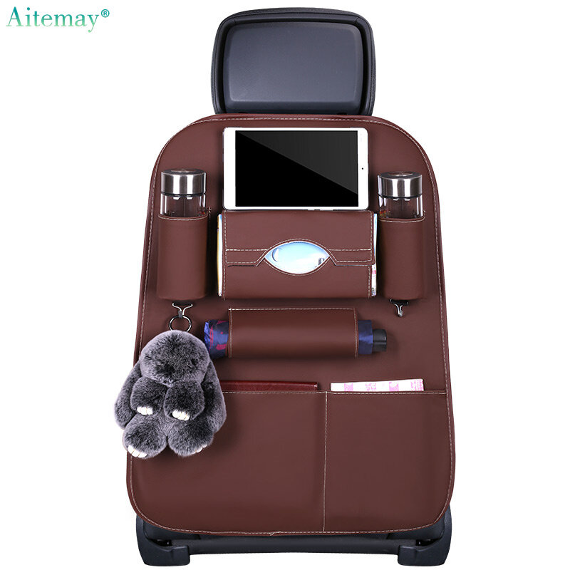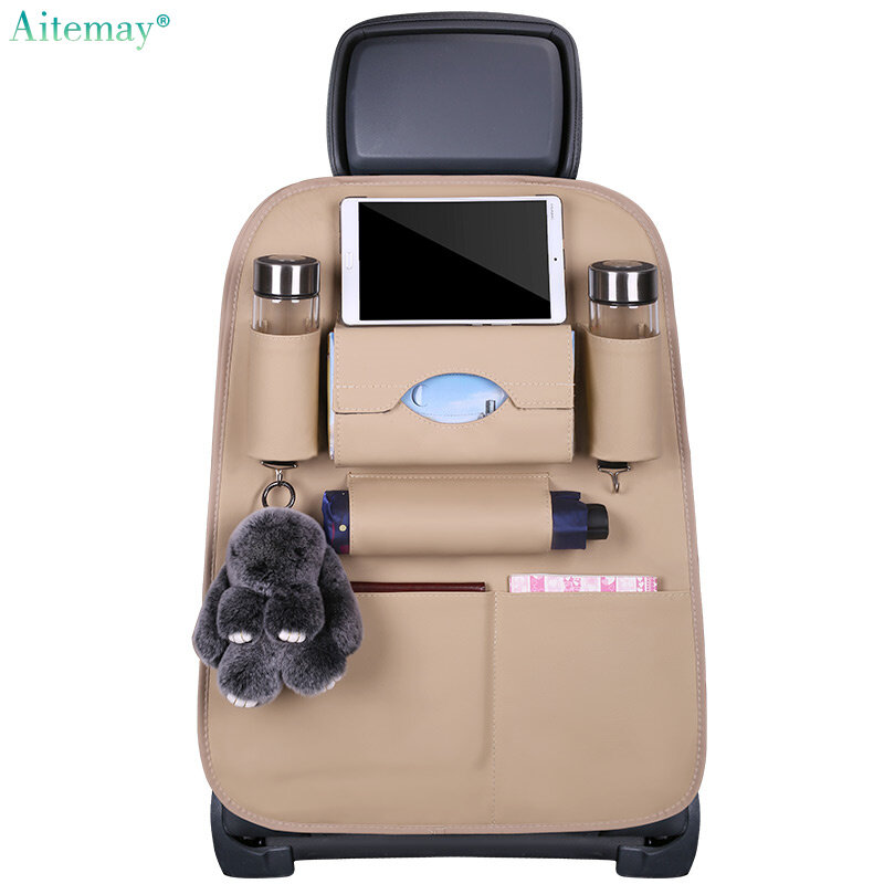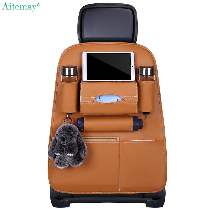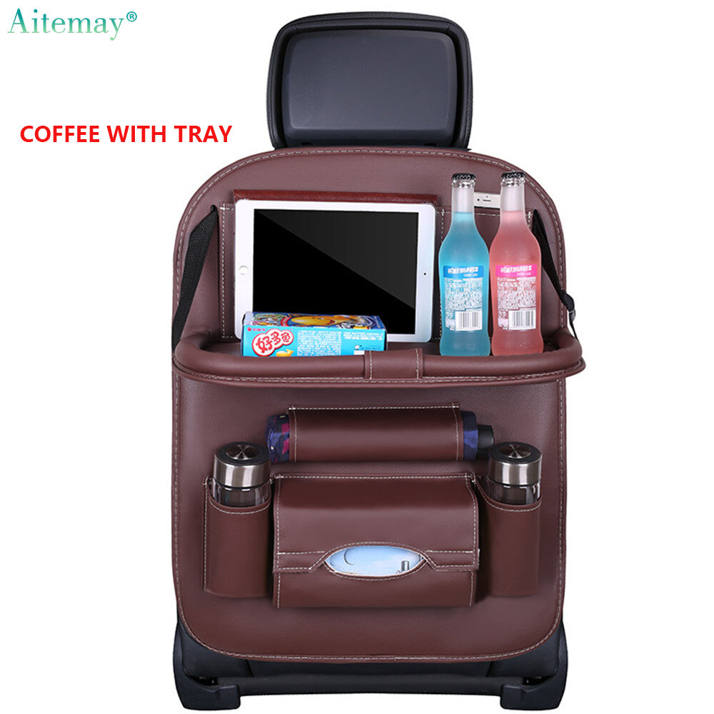 Aitemay Pu Leather Pad Bag Car Seat Back Organizer Foldable Table Tray Travel Storage Bag Foldable Dining Table Car Seat Storage Bag