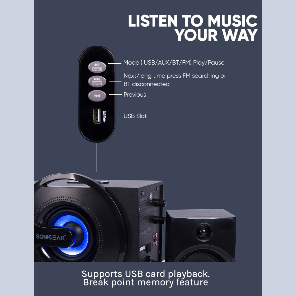 SonicGear Titan 5 BTMI Bluetooth Speakers with 4 Inch Bass Driver | 7 LED Light