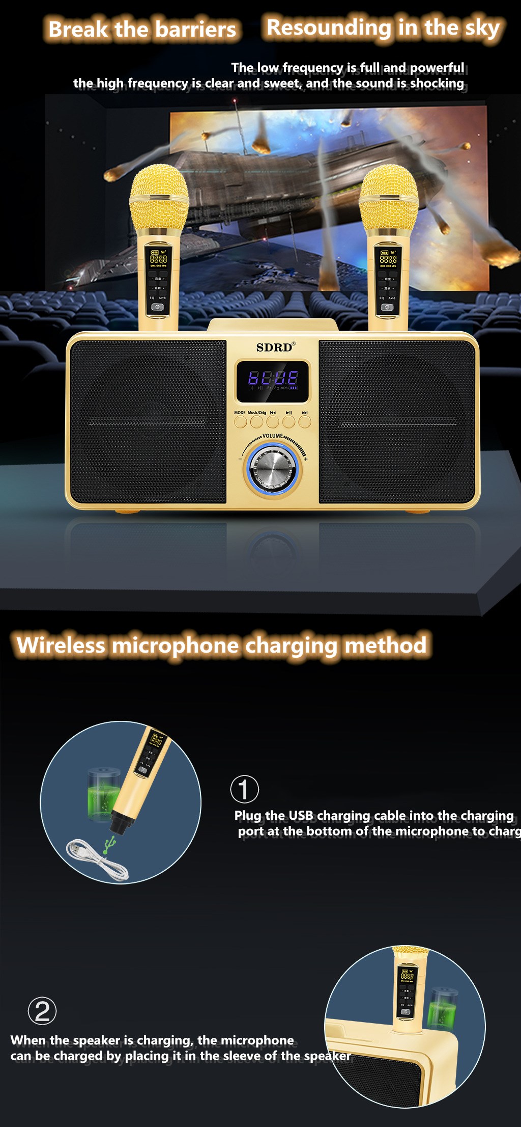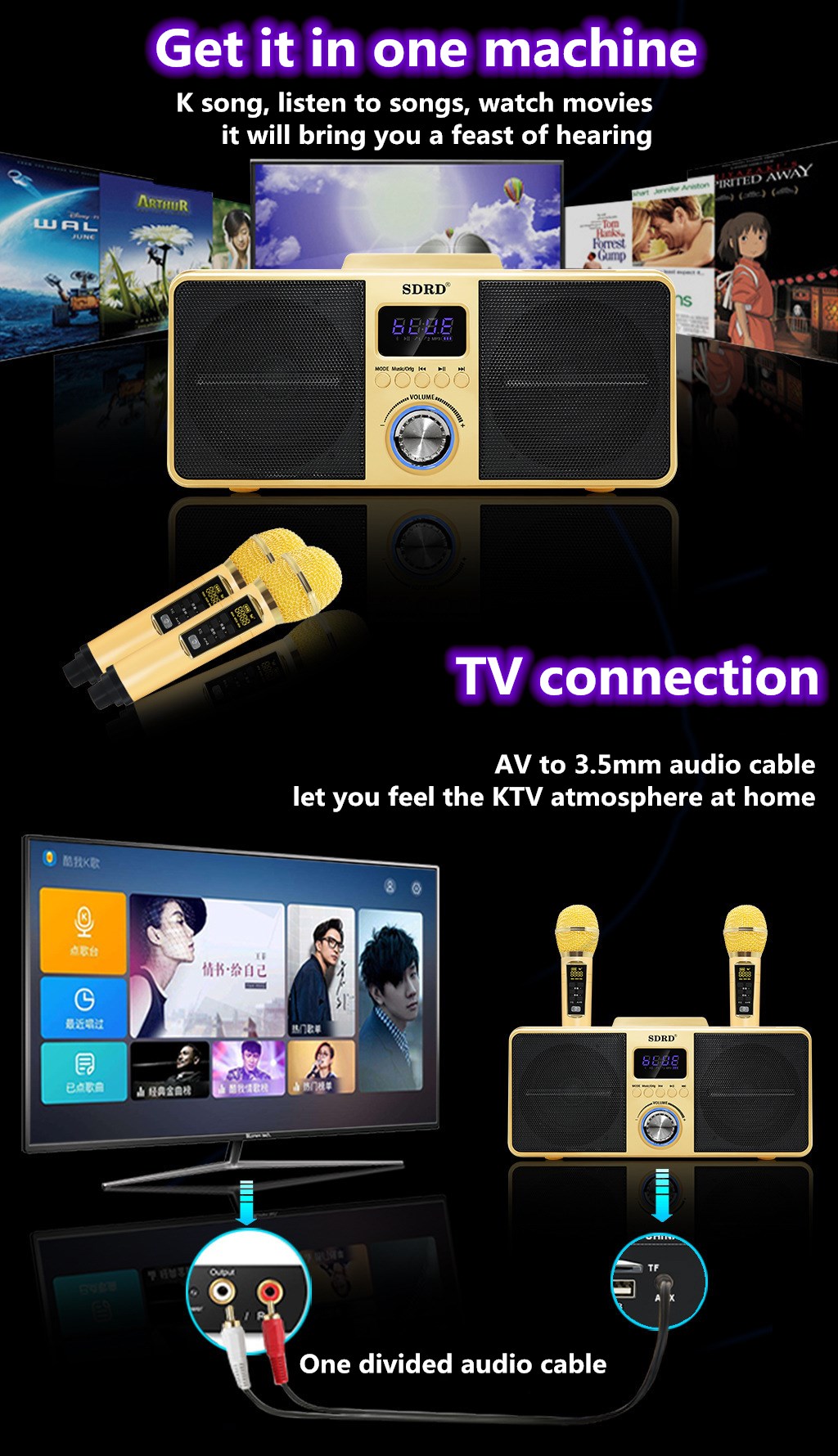 【Singapore Supplier】SD309 HOME KTV Dual Wireless Microphone Bluetooth Wireless Stereo All-in-one Speaker Mobile Wireless Karaoke Speaker 30W SDRD Speaker Set Support Wireless Recording Connection to T