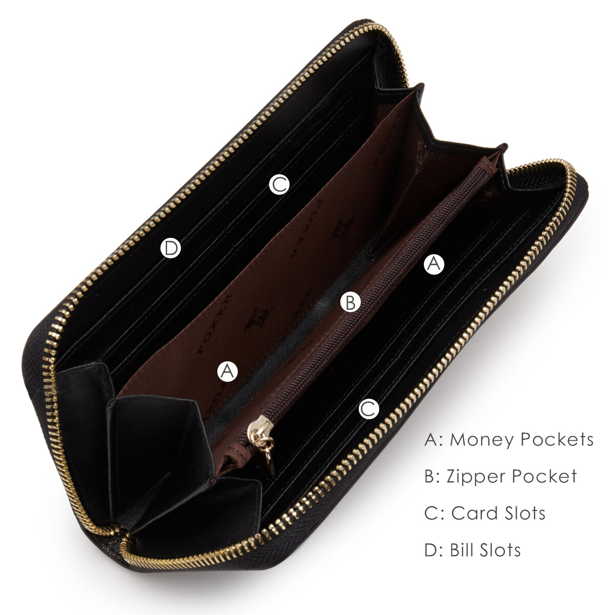 FOXER Women Cow Leather Long Wallet Wallet Clutch Wallet with Wristlet Card Holder Coin Purse Cellphone Bag Female Clutch Bags