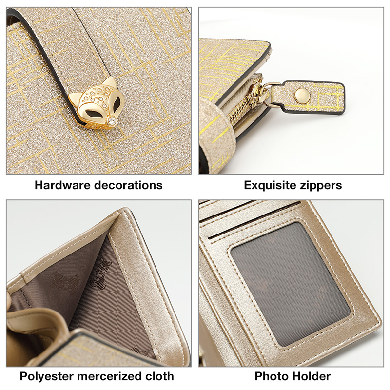 Foxer Lady Fashion Money Wallet Women Chic Small Coin Pocket Female Luxury Split Leather Money Purse Shine Multi-function Wallet