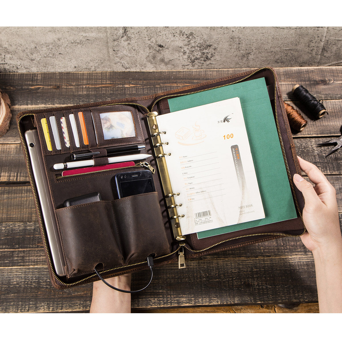 CONTACTS FAMILY For iPad Pro 11 Case 2020 Air 5 10.9 2022 A5 Binder Folder Genuine Leather Padfolio Cover for ipad Air 3 10.2“ Tablet case For Galaxy Tab S4 10.5 inch MATEPAD 10.1/10.8 inch