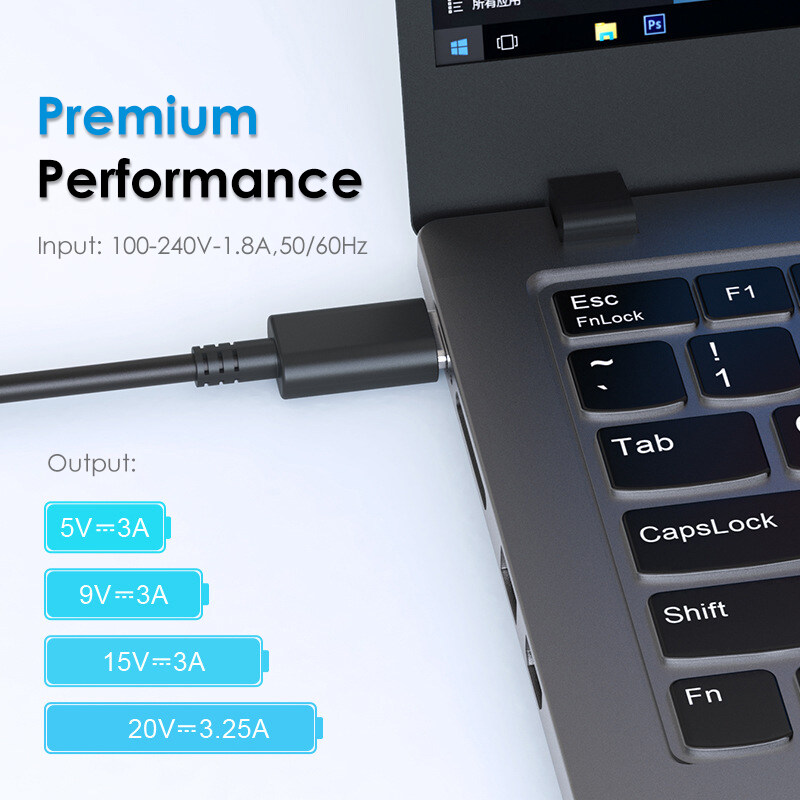 NORTHJO 65W USB C PD Charger Power Adapter Type C Laptop Charger for Lenovo Yoga ThinkPad HP Spectre Nintendo switch iPad Pro Tablets Mobile Phone SAMSUNG Huawei Xiaomi Surface Pro 7 - US / UK / EU P