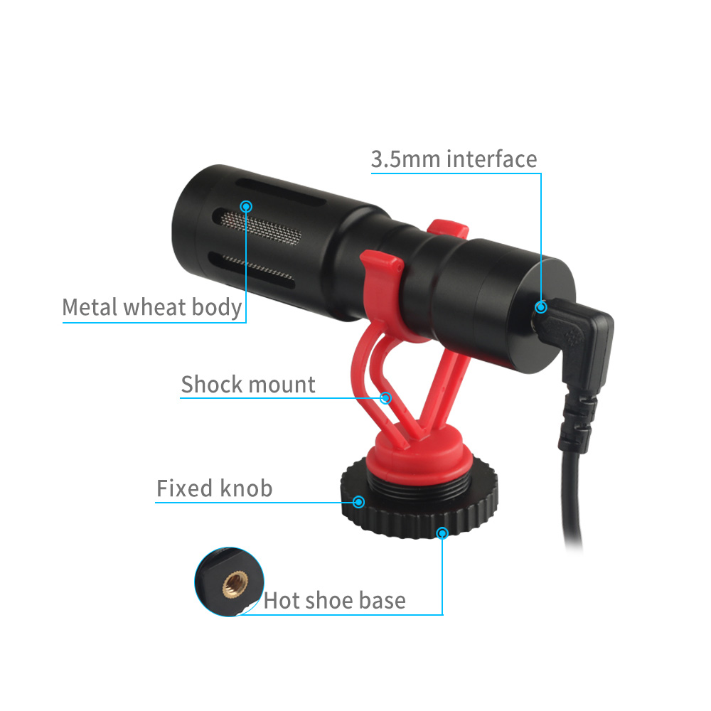 Universal Cardioid Directional Video Condenser Microphone Mini Mic 3.5mm Plug with Anti-Shock Mount for Can-on Ni-kon So-ny DSLR ILDC Cameras Camcorders Smartphones