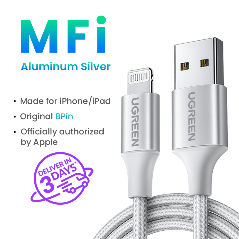 UGREEN MFI Lightning to USB Fast Charging Cable foriPhone 14 13 Pro Max iPhone 14 Plus iPhone 12 11 Pro Max 11 8 Xs Max XR 7 Mobile Phone Cable USB Charger Cord,Black/Silver-Intl