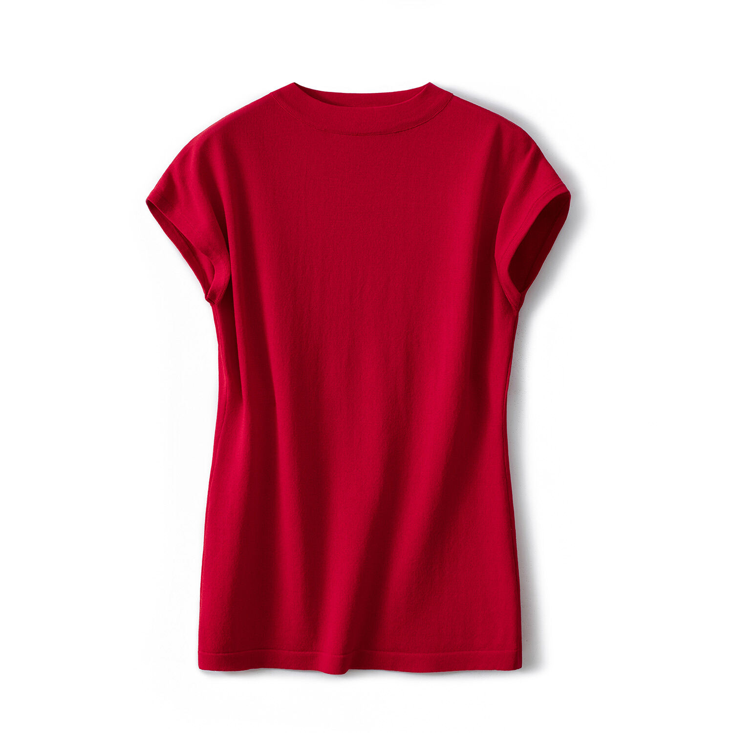 Ice Silk Short-Sleeved T-shirt for Women Summer 2021 New Loose Half High round Neck Sleeveless Sweater Solid Color Top Thin