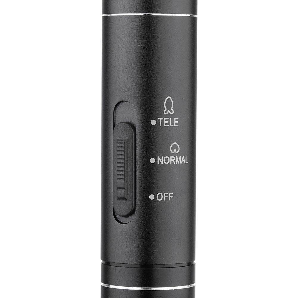 Push the switch to 'TELE' for long distance application, 'NORMAL' for short distance application.