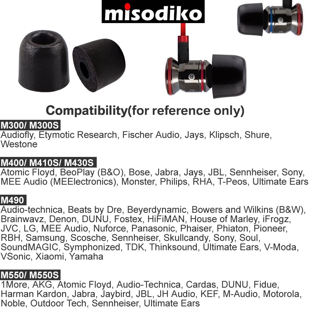 Fits to earphones with 5.6mm-6.9mm ear nozzle: 1More, AKG, Atomic Floyd, Audio-Technica, Cardas, DUNU, Fidue, Harman Kardon, Jabra, Jaybird, JBL, JH Audio, KEF, M-Audio, Motorola, Noble, Outdoor Tech, Sennheiser, Ultimate Ears.