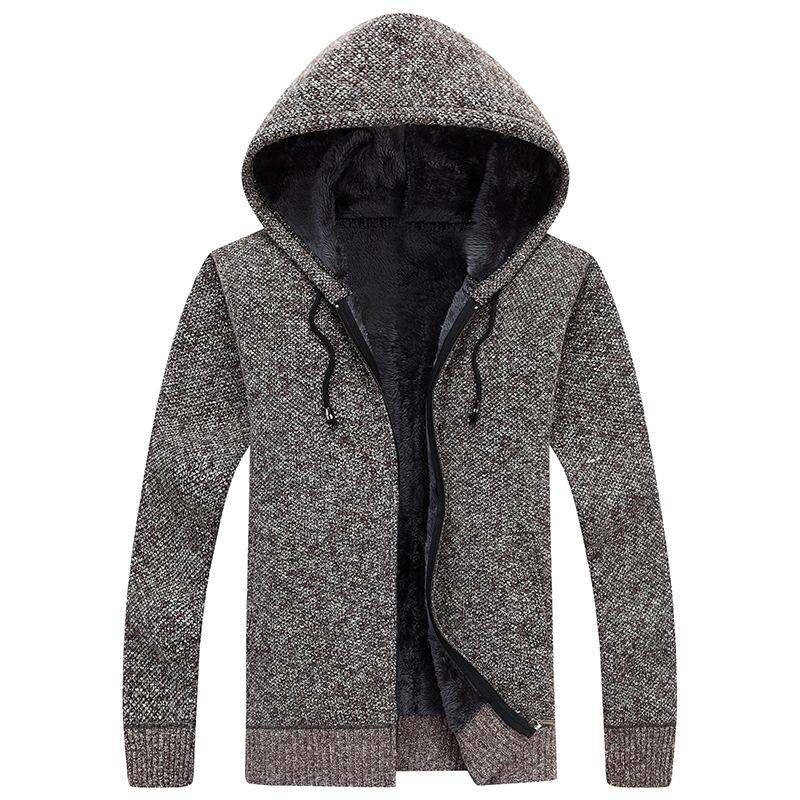 Autumn and Winter Men's Casual Fleece-Lined Thickened Cardigan Sweater Stand Collar Youth Turtleneck Sweater Men's Sweater Coat Men's