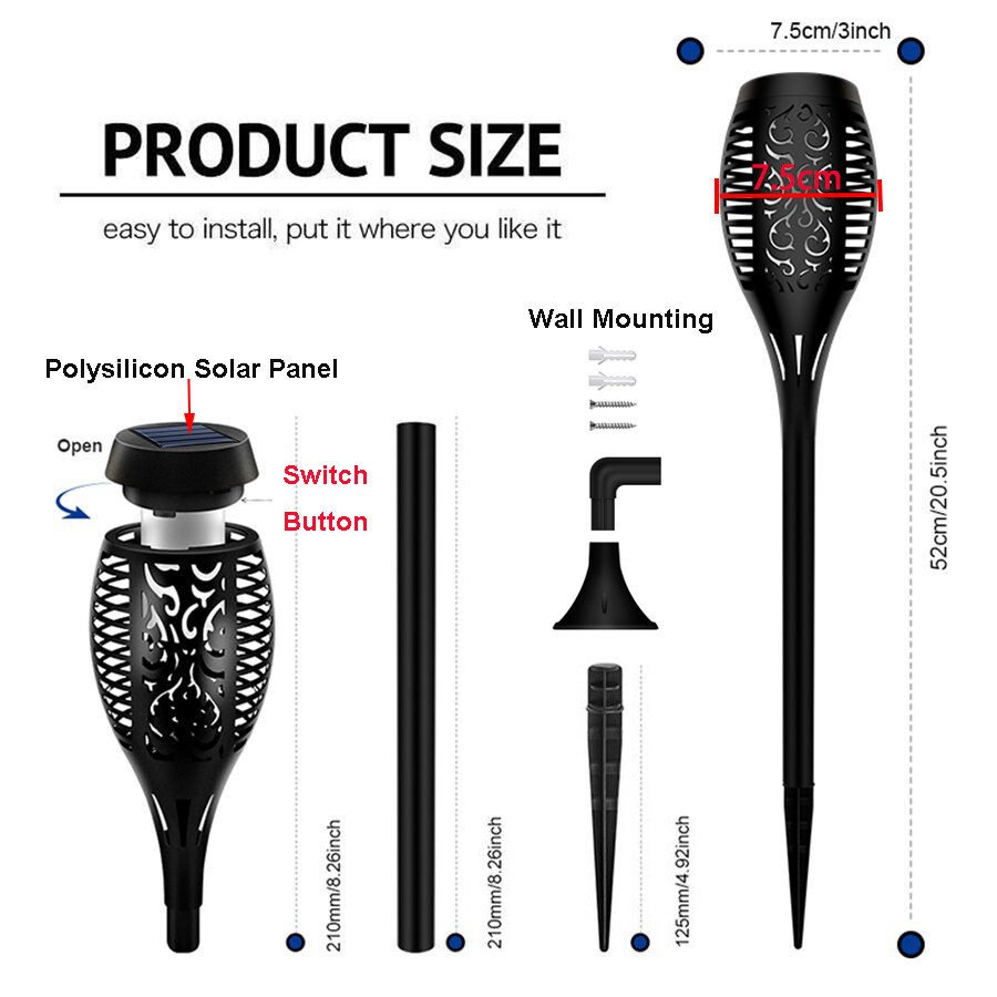 Duration of use: Light up 10-12 hours in summer and 5 hours in winter after fully charged.