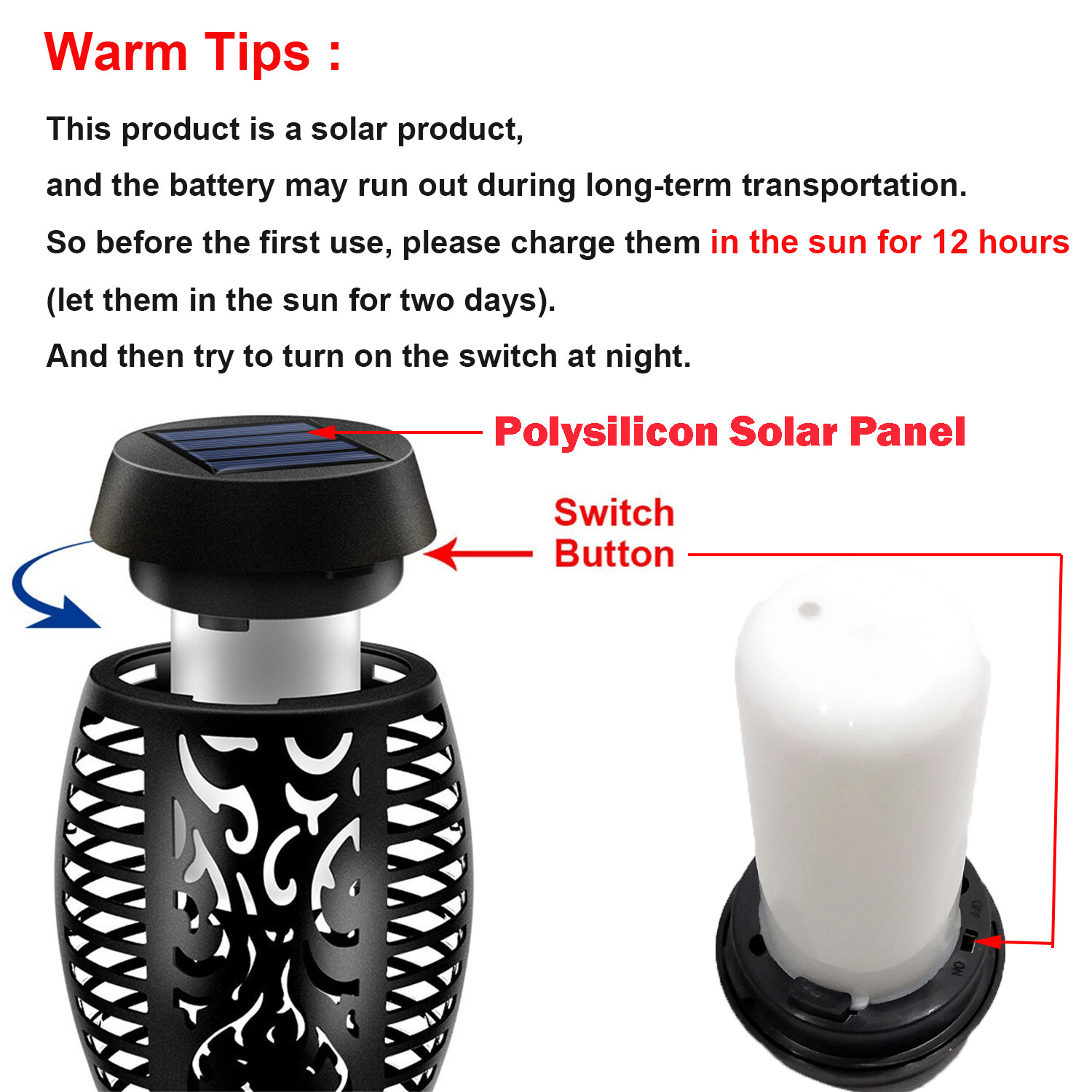 Prior to first use, please charge the outdoor solar lights light for 1 sunny day