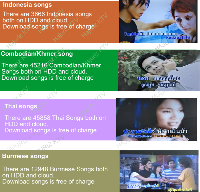 2.Download songs from cloud .There  are more than 400K different language songs(Mandarin,Cantonese,Taiwanese,Vietnamese,English,Korean,Japanese,Thai,Burmese,Malay,Filipino,Spanish,etc. More than 10 kinds of songs on cloud ) on Cloud for download.The system updates songs each every week.It will hint Synchronize new updates cloud songs if there are new songs.