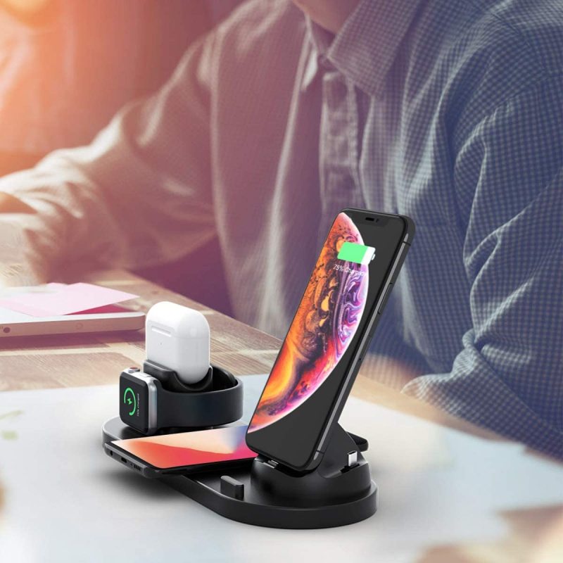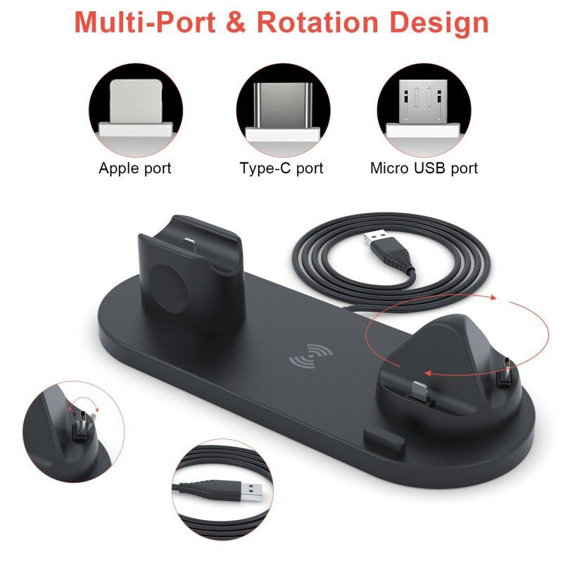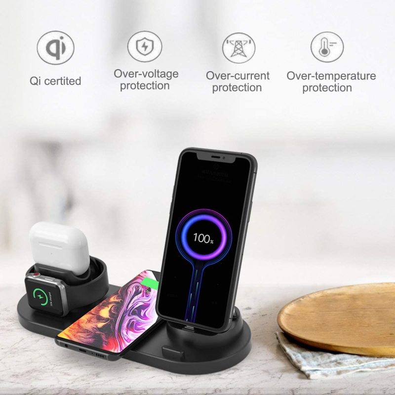 DESKTRON Wireless Charging Station 6-In-1, Qi Wireless Fast Charging Charger Dock Compatible with iWatch Airpods up to iPhone 13 and Samsung Android Wireless Phones | SG Local Stock
