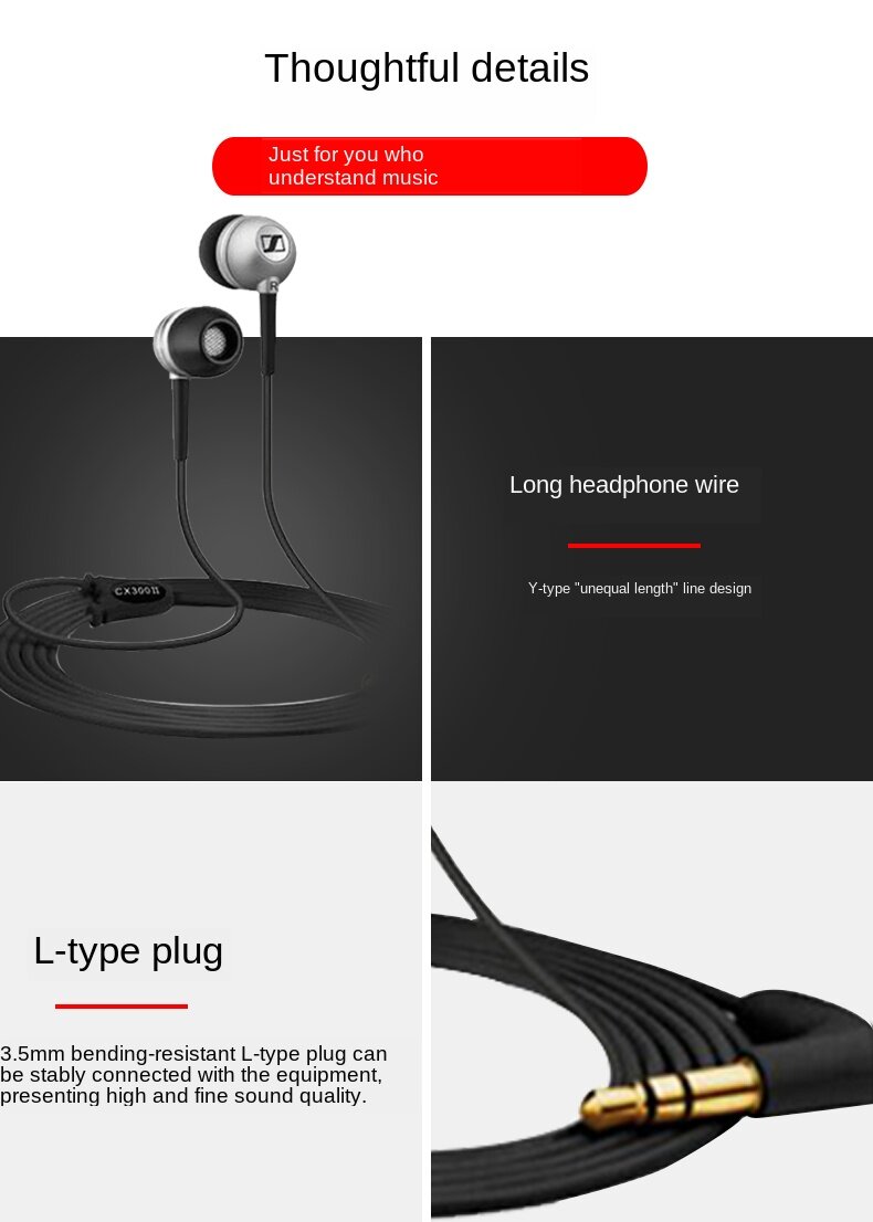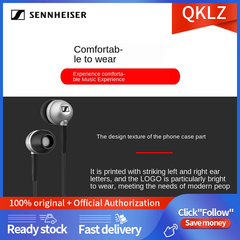 【Free gift】Sennheiser CX300 II earbuds 3.5mm in-ear wired earphones double pure bass stereo sound gaming headset headphones with mic and noise cancellation volume control HIFI earphones for music micr