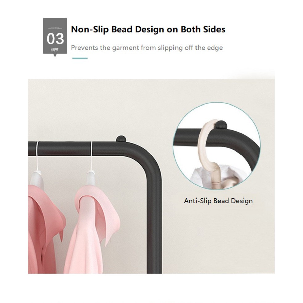 Non-slip bead design on both side to prevent garments from slipping off the edge