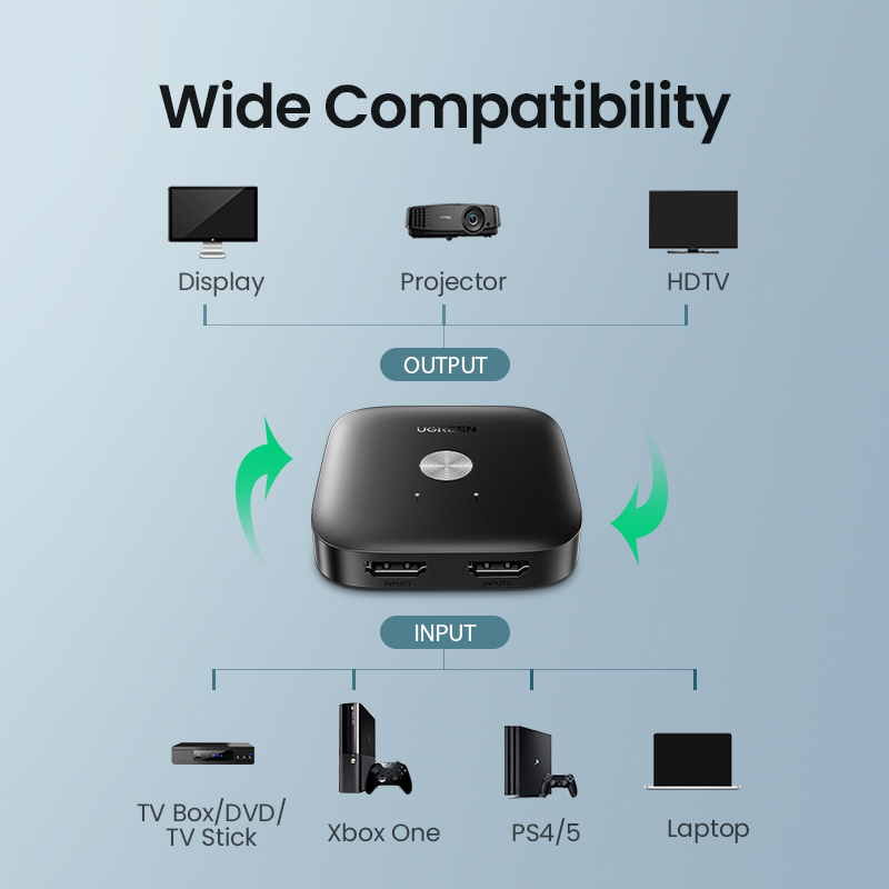 UGREEN HDMI Switch 4K/60Hz HDMI Switcher for Xiaomi Mi Box 2 In 1 Out Converter HDMI Splitter for PS5 PS4 TV Box Switcher HDMI