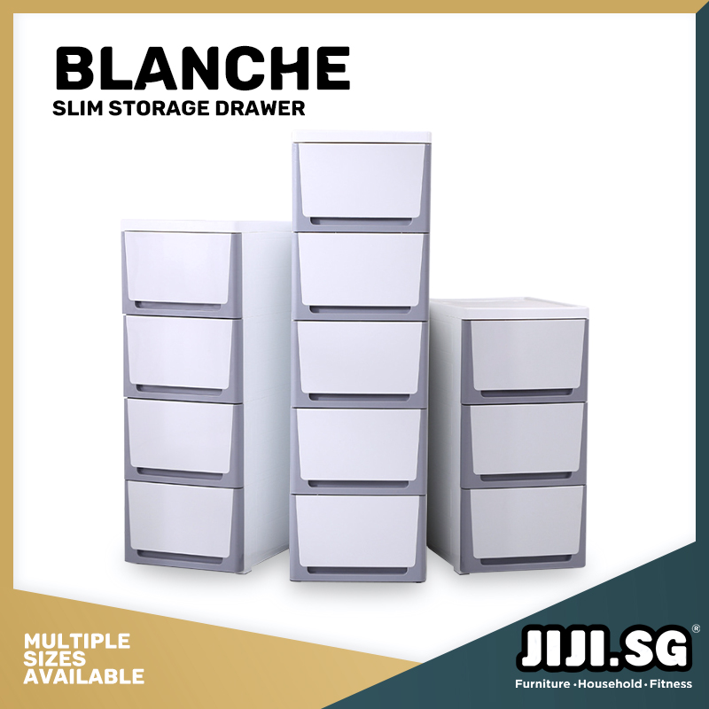 (JIJI.SG) BLANCHE Slim Storage Drawer - Cabinet PP - Multi Purpose - Home Organizer - Moveable with Wheels -Box / jt