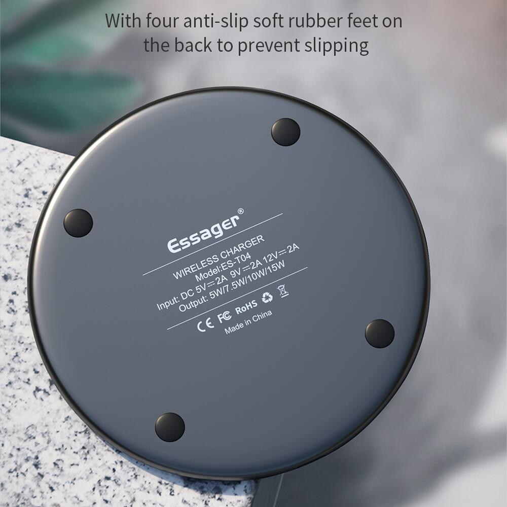 Essager 15W Qi Wireless Charger Fast Wireless Charging Compatible with iPhone 11 Pro X XR Max 8 Xiaomi mi 10 Samsung s20 (Including 1Meter Type C Cable )