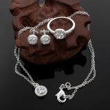 BUYINCOINS Womens 925 Silver Plated Crystal Necklace Earring Ring Set Jewelry Silver - intl