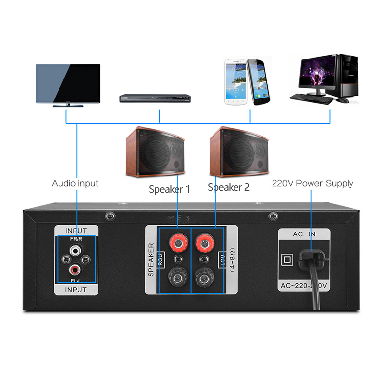 Supports microphone input, Bluetooth, and USB input. Can be connected to Bluetooth, mobile phones, TV, TV BOX, PC, etc. to play sounds.