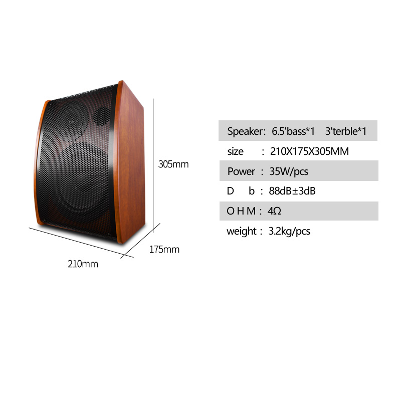 Suitable for 20㎡-80㎡ of space use. Each speaker uses a 6.5 inch woofer and 3.5 inch tweeter.
