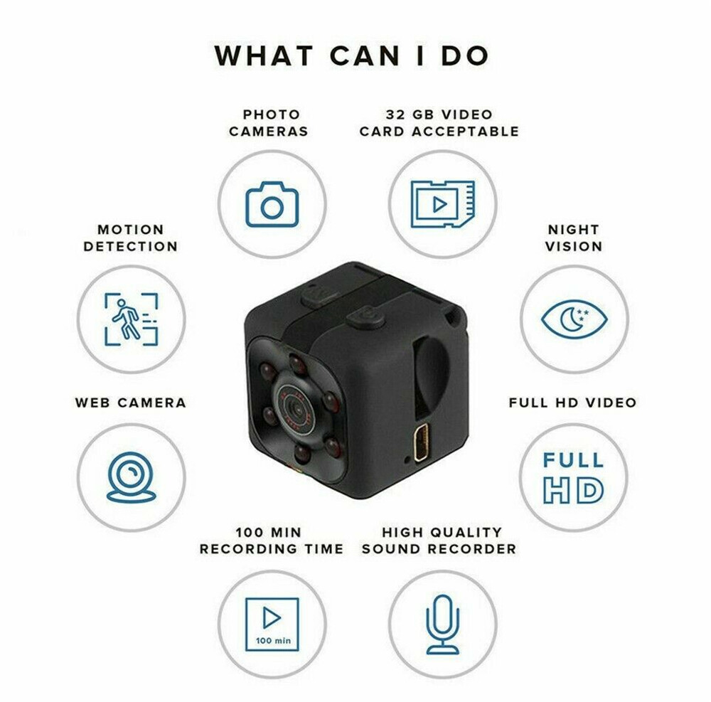 Original SQ11 Mini Spy Camera Hidden Sensor Night Vision Camera Sports DVR Mini Camera HD 720P Sports DV Video Small Video Camera Cam Connected to Mobile Phone Spycamera for Bathroom Mini Wireless CC