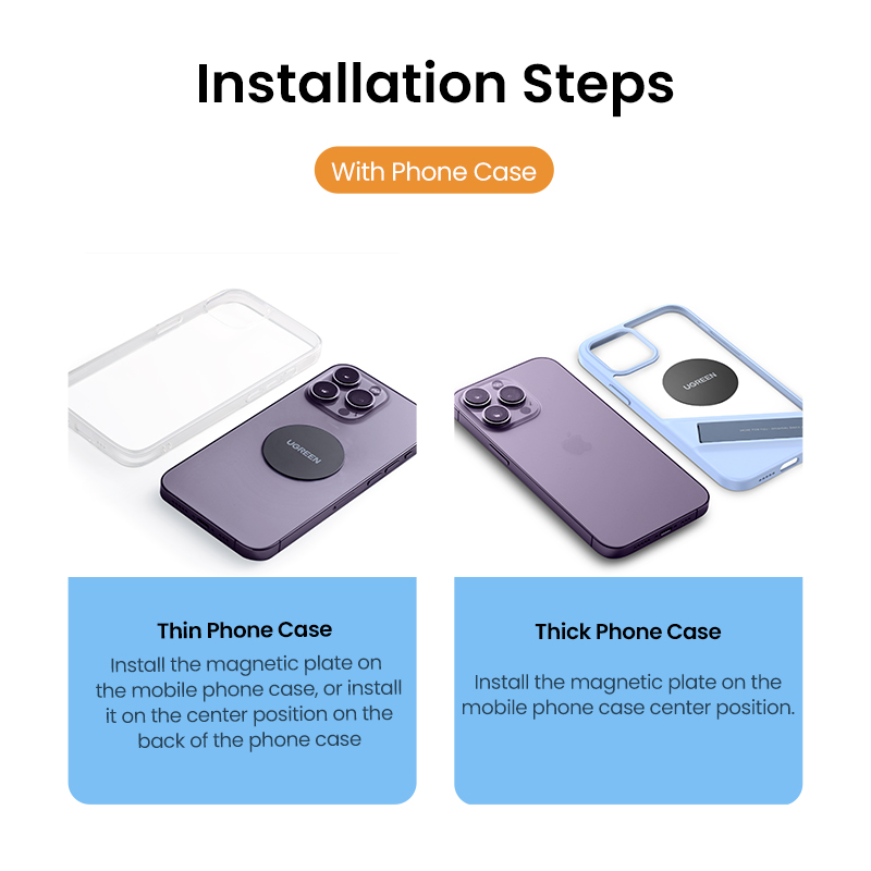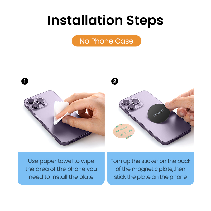 UGREEN Metal Plate For Cell Phone Magnet Holder Magnetic Car Mount With Strong Adhesive Sticker