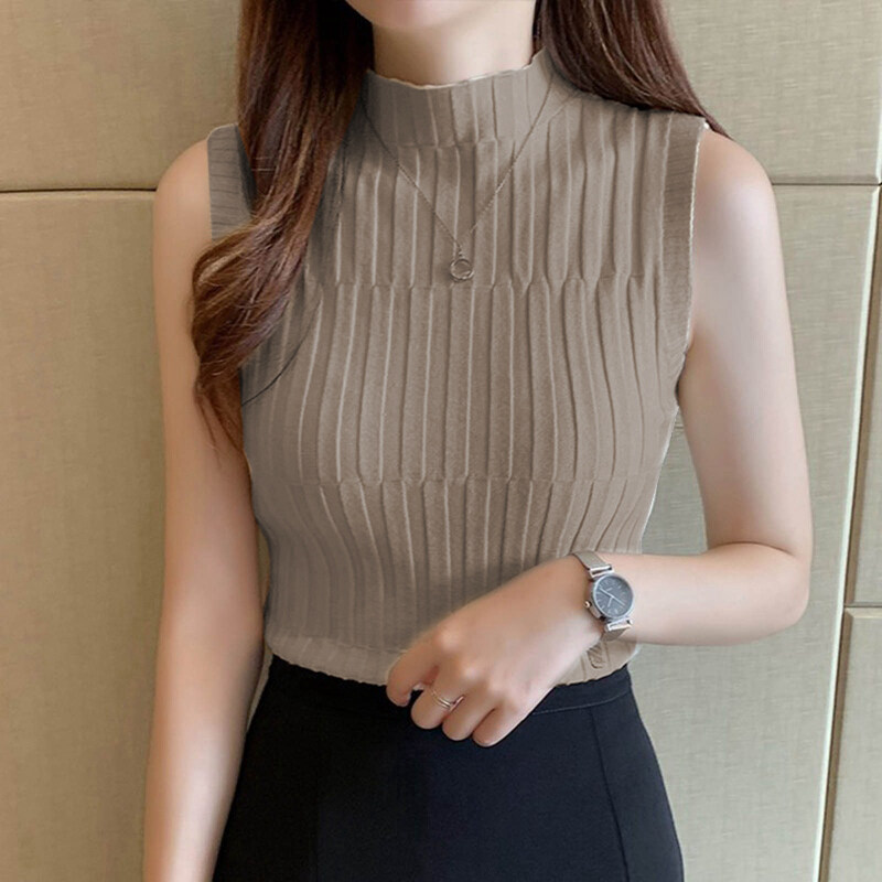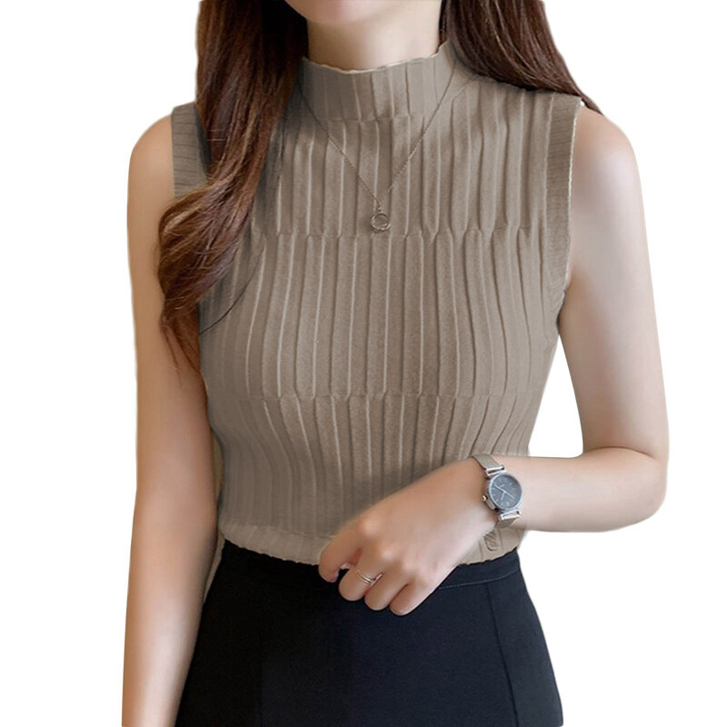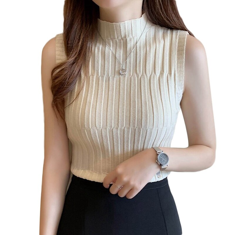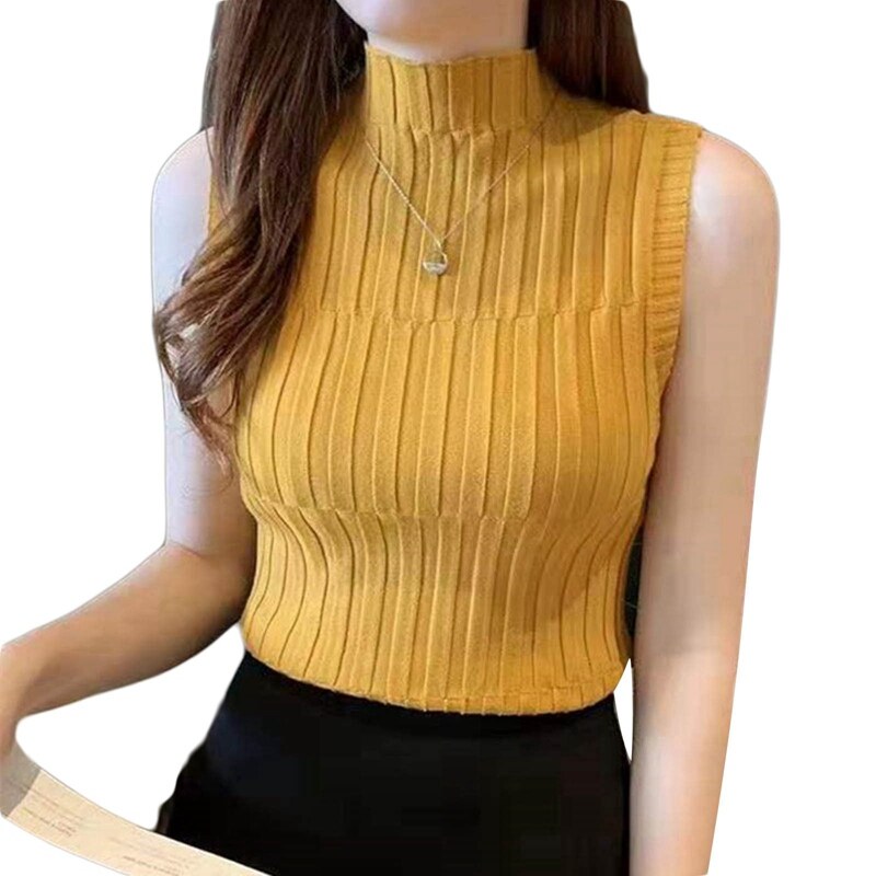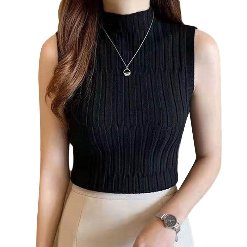 sillmer 2020 Summer Korean Fashion Women Solid Half Turtleneck Sleeveless Slim Knitted T-Shirt Vest