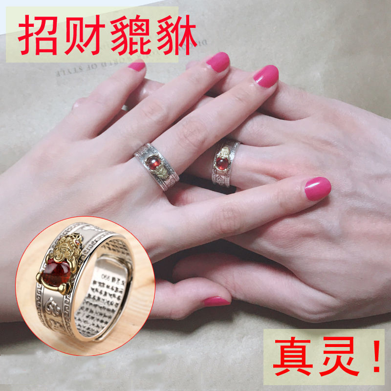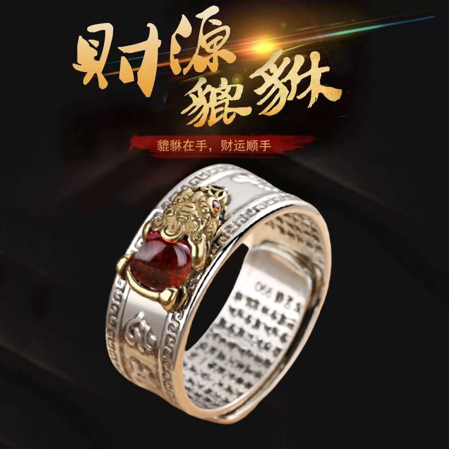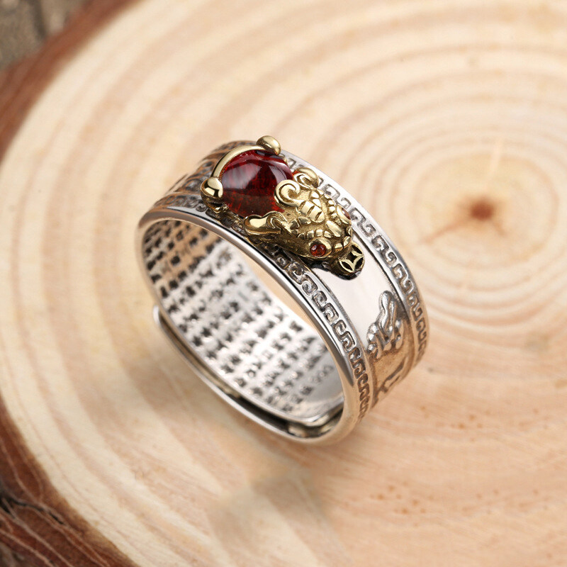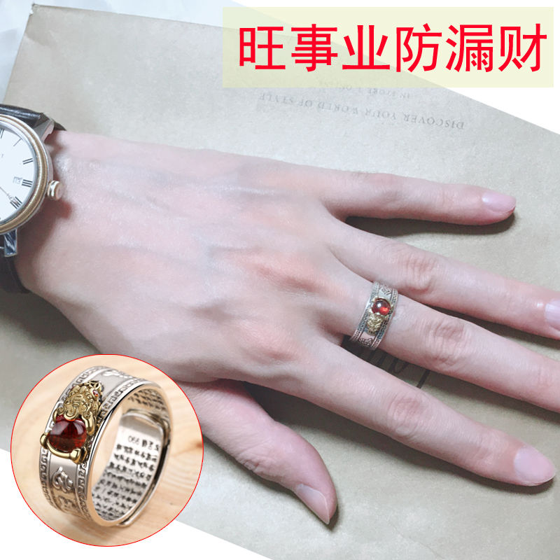 IY-New Natural Garnet Heart Sutra Ring Pixiu Ring Auspicious Cloud Ring Lucky Ring Brings Wealth Ring Men and Women's Rings