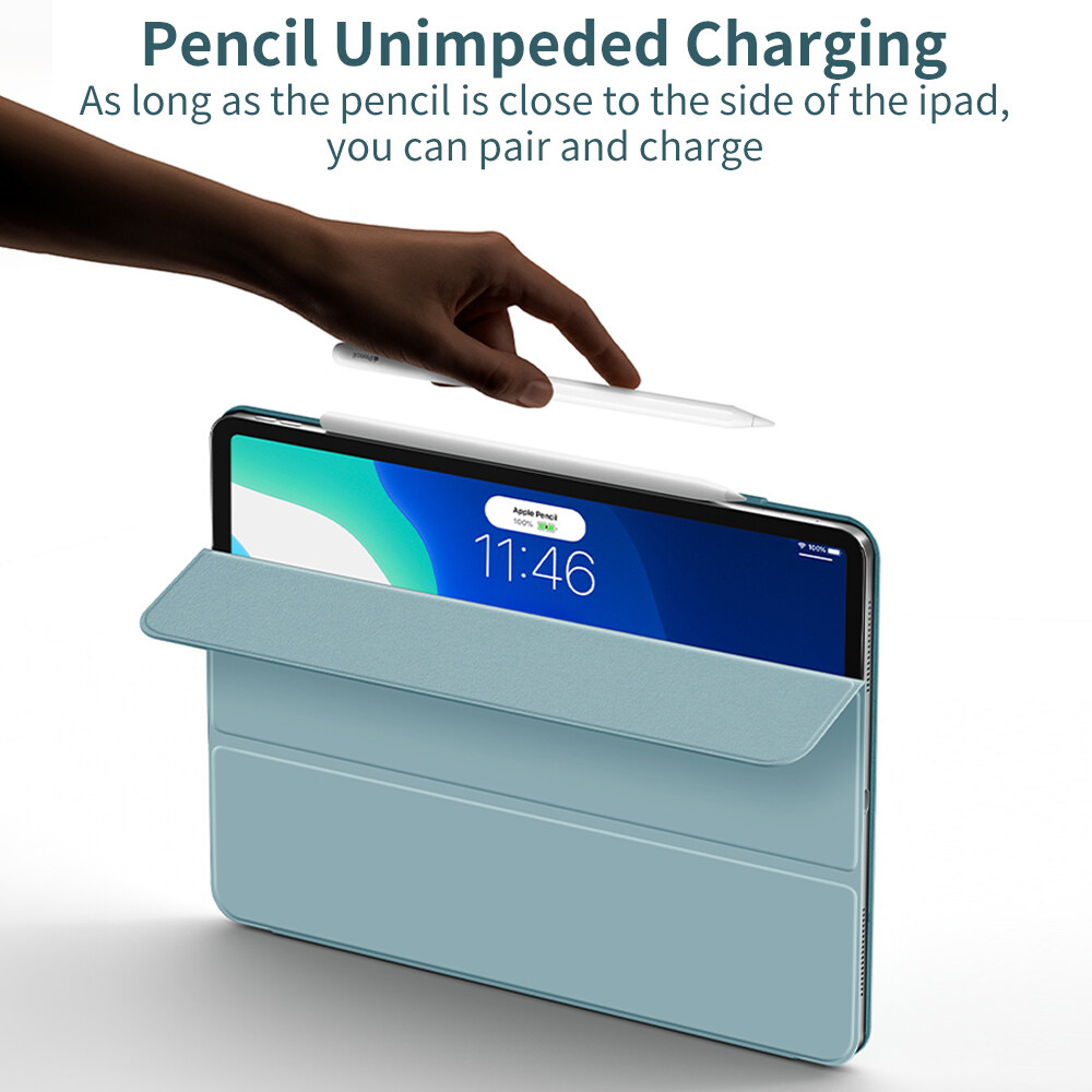 The fully magnetic design ensures that the ipad is attached to the magnetic back cover [supports apple pencil magnetic attachment and wireless charging