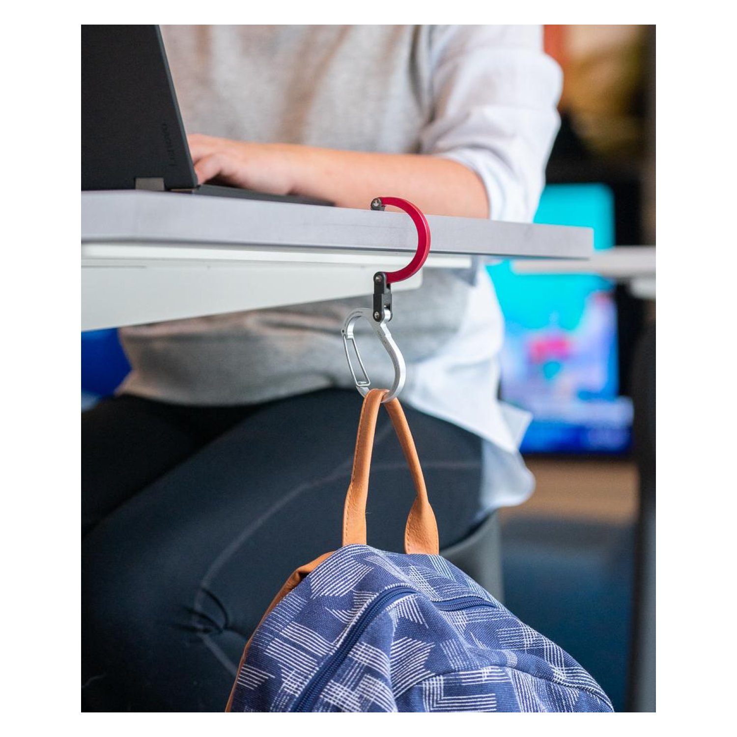 With the Heroclip, you can hang your bag on the table’s edge, keeping it off the floor.