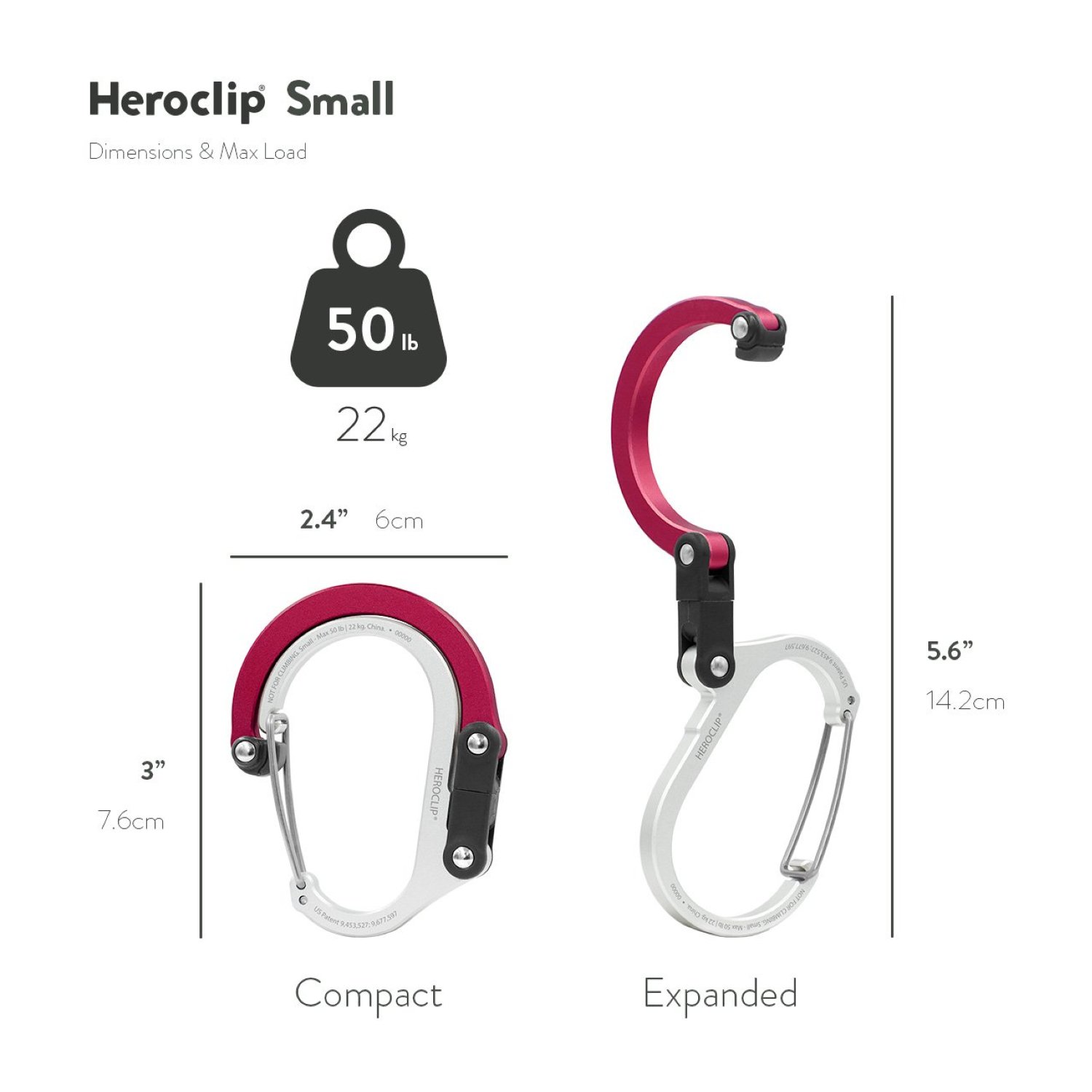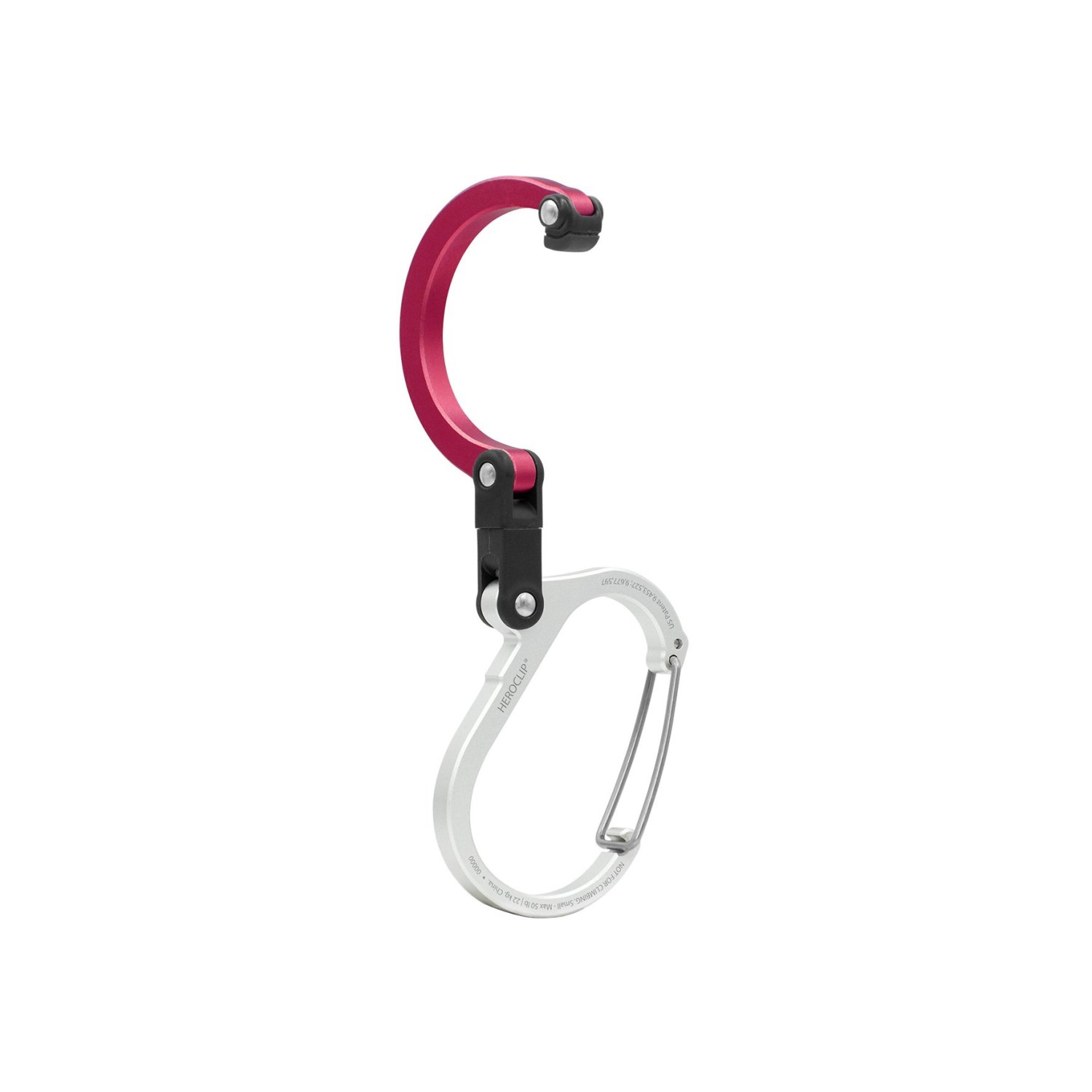 Perfect for midsize items you encounter every day, Heroclip Small gear clip lets you hook and hang commuter bags and backpacks from shelves, counters, tables, chairs or even doors. They're also great for hanging gravity filters from tree branches, tools from a ladders, or carry-on bags from roller suitcase handles. This versatile gear clip hangs securely, rotates 360 degrees, and folds compactly in ways other carabiners, clips and hooks can't, helping you keep your gear organized and exactly where you want it, no matter the activity. The clip also features a wider clip gate compared to standard carabiners and hooks, and a hook with a grippy rubber tip for hanging things from flat surfaces.