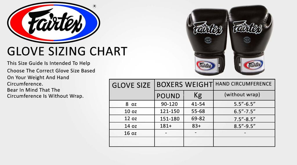 Constructed of premium quality leather with the Fairtex signature three-layered foam system for excellent hand and knuckle protection and shock dispersement.