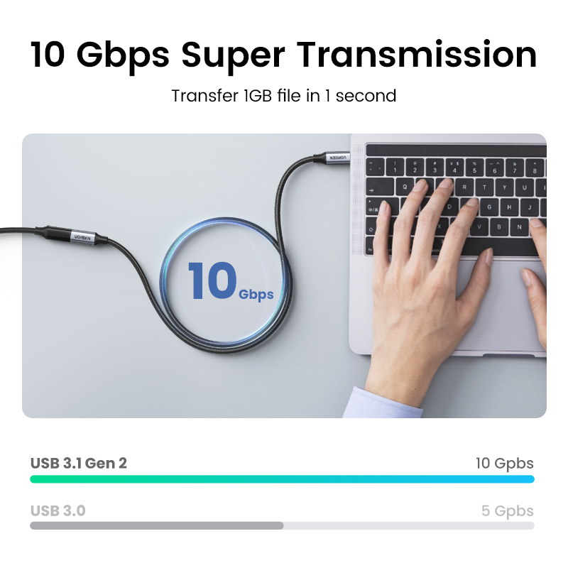 UGREEN USB C Extension Cable USB Type C 3.1 Gen 2 Male to Female Fast Charging & Audio Data Transfer Cable for MacBook Pro iPad UGREEN USB Type C Extension Cable - USB 3.2 Gen2 Extender 3FT 10Gbps Dat