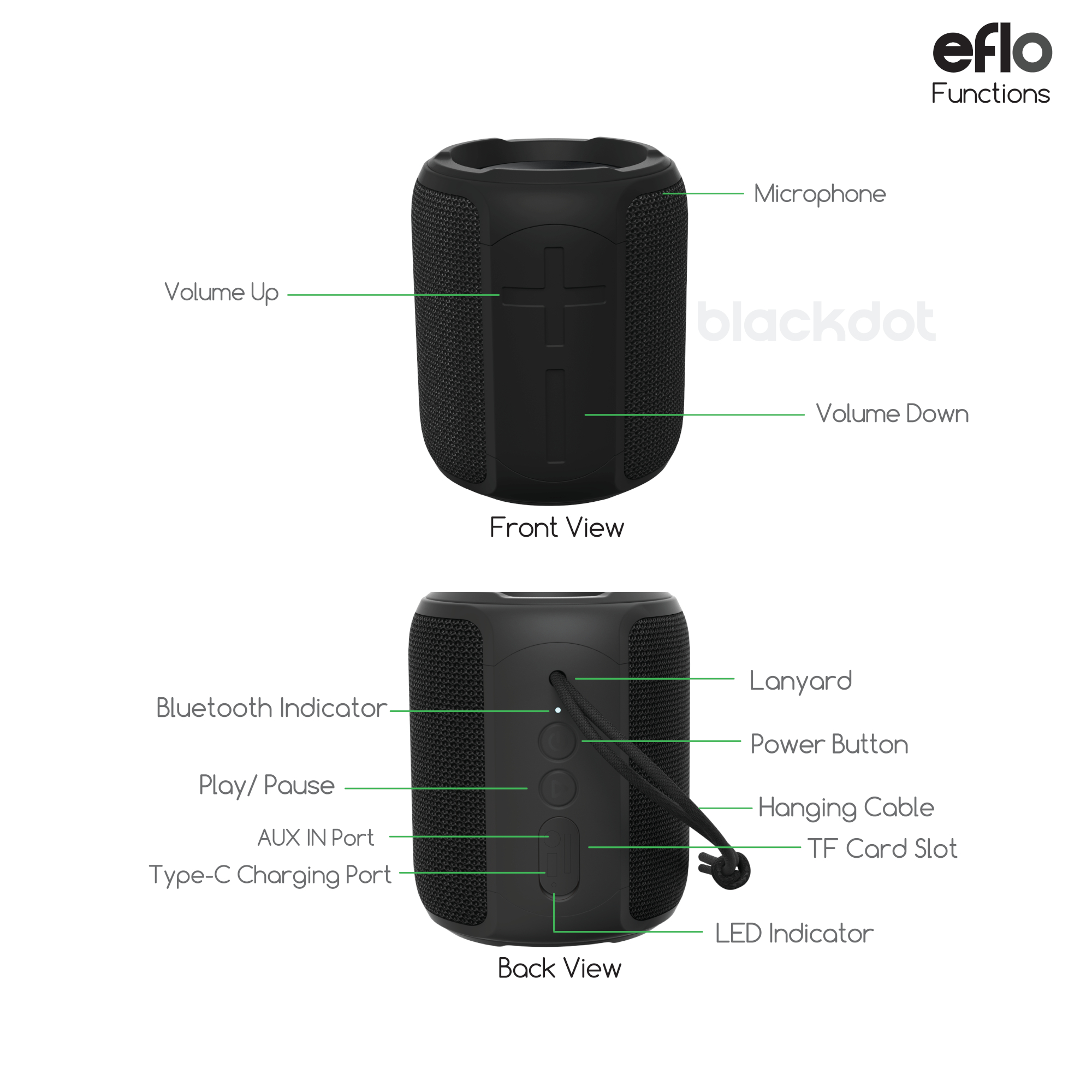 Blackdot eFlo Wireless Speakers With 360 Premium Sound, In-built Mic & IPX7 Waterproof