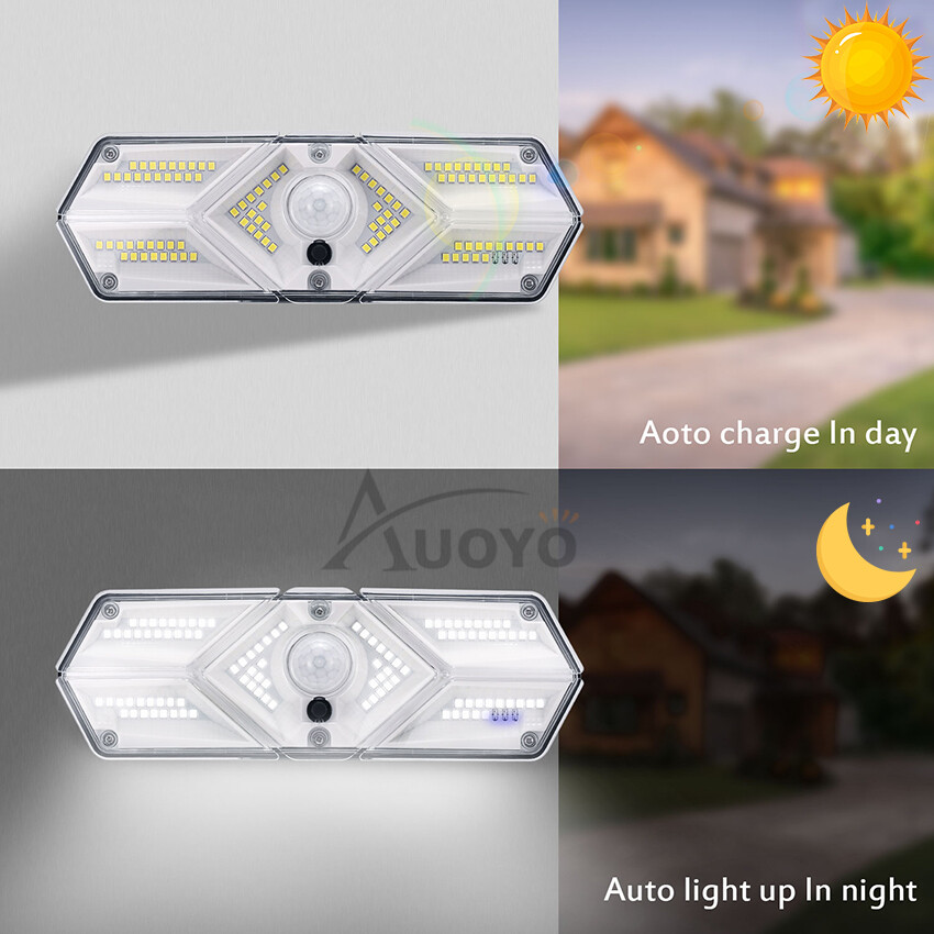 Auoyo 104 LED Solar Lights Outdoor Lighting Wall Light Lamps Motion Sensor Lamp IPX5 Waterproof Wall Lamp with 270°Wide Angle Solar Powered Lights Decorative Night Light Sunlight Solar Light for Front