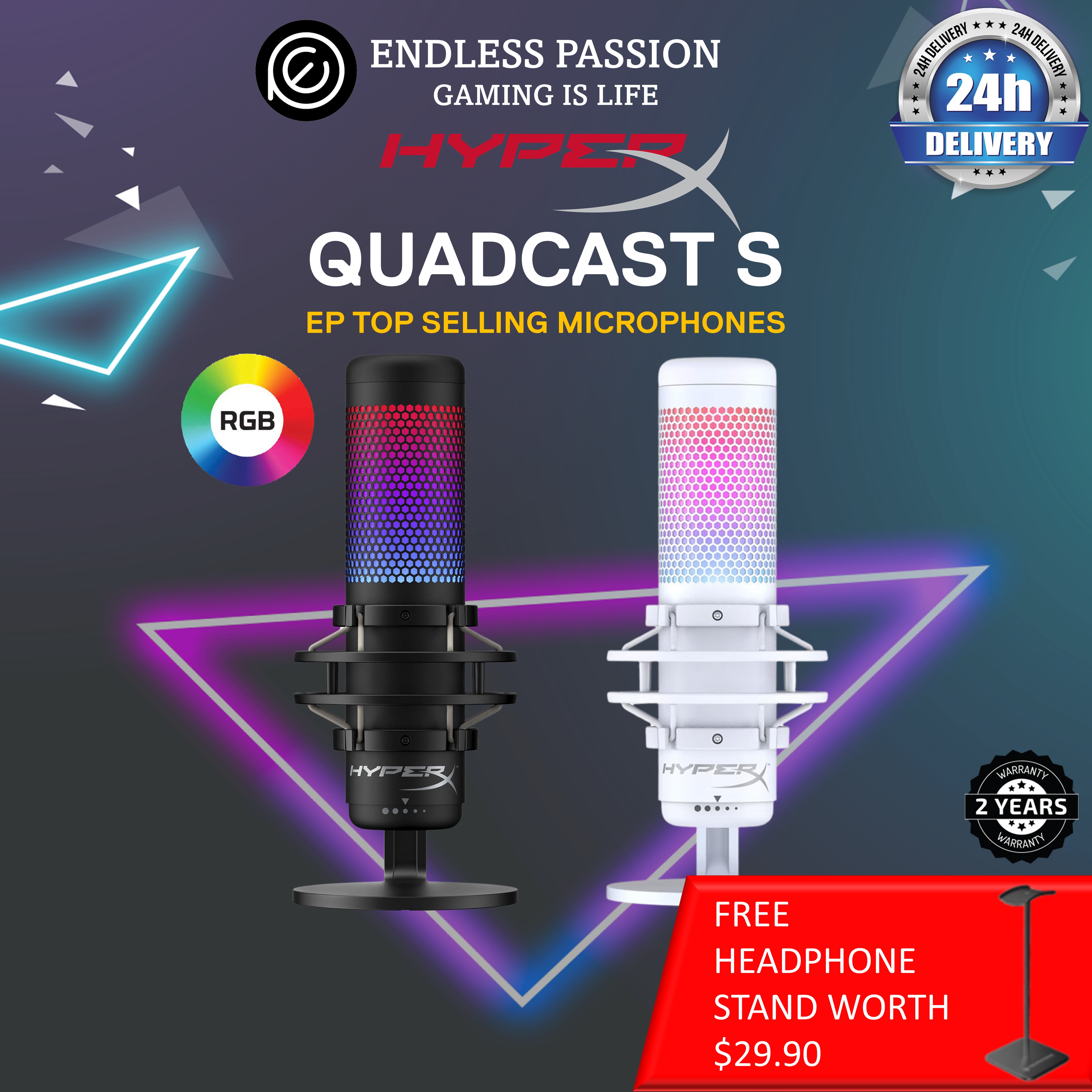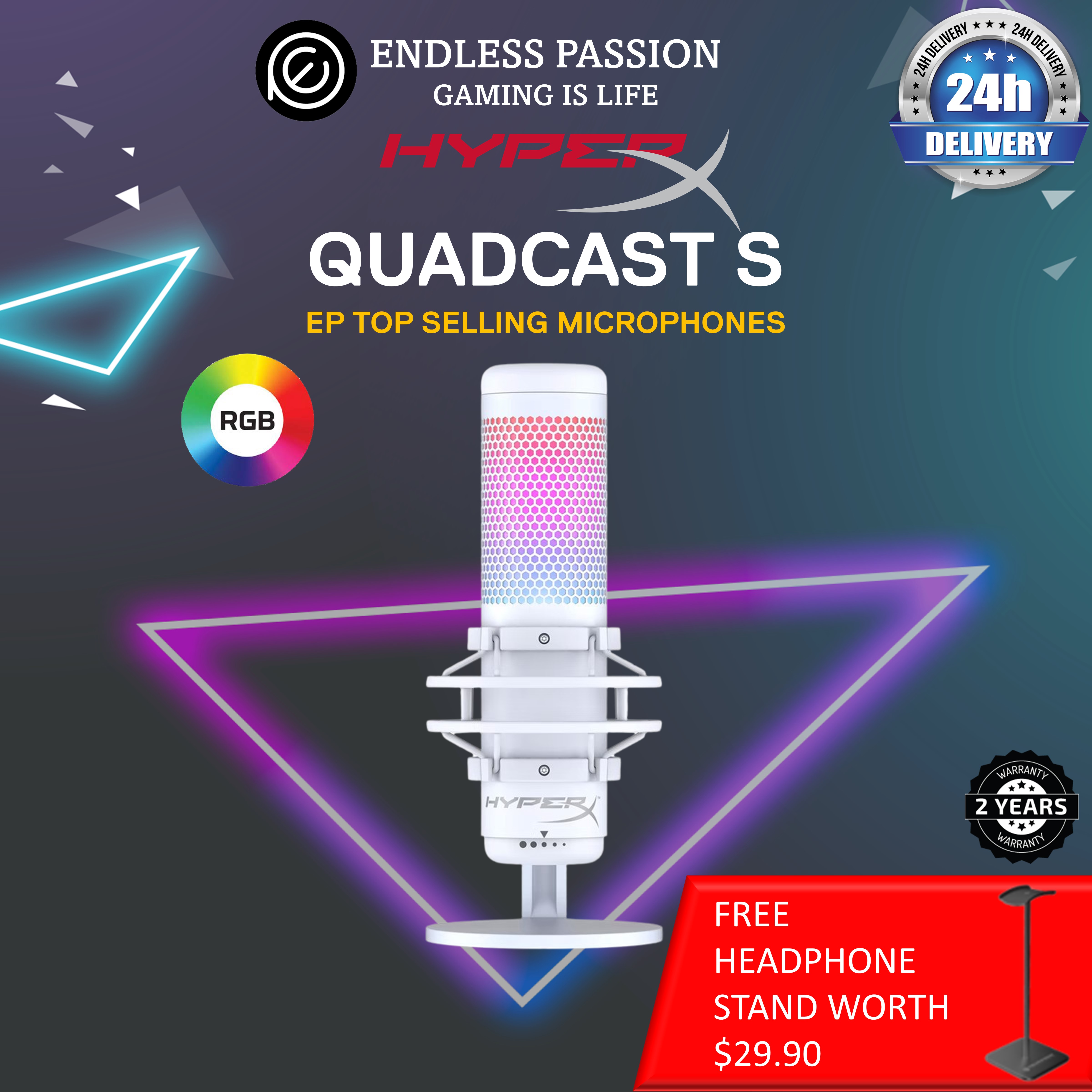 HyperX QuadCast S RGB USB Condenser Microphone for PC, PS4 and Mac - Available in Black & White