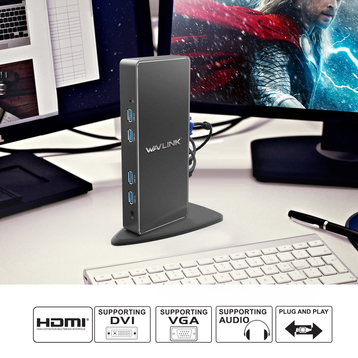 With one laptop, you can perform a wide variety of tasks from charging and updating mobile devices to monitoring your home with a security camera to completing a home theater system. Unfortunately, most laptops don’t have enough ports to connect everything you need. Wavlink Docking Station will solve your problem. Devices remain constantly connected, letting you overcome laptop port limitations while also eliminating the aggravation of continually reconnecting peripherals. You can even tuck the dock neatly under your laptop, to create a full-sized hotel desk workstation that’s organized and clutter-free.