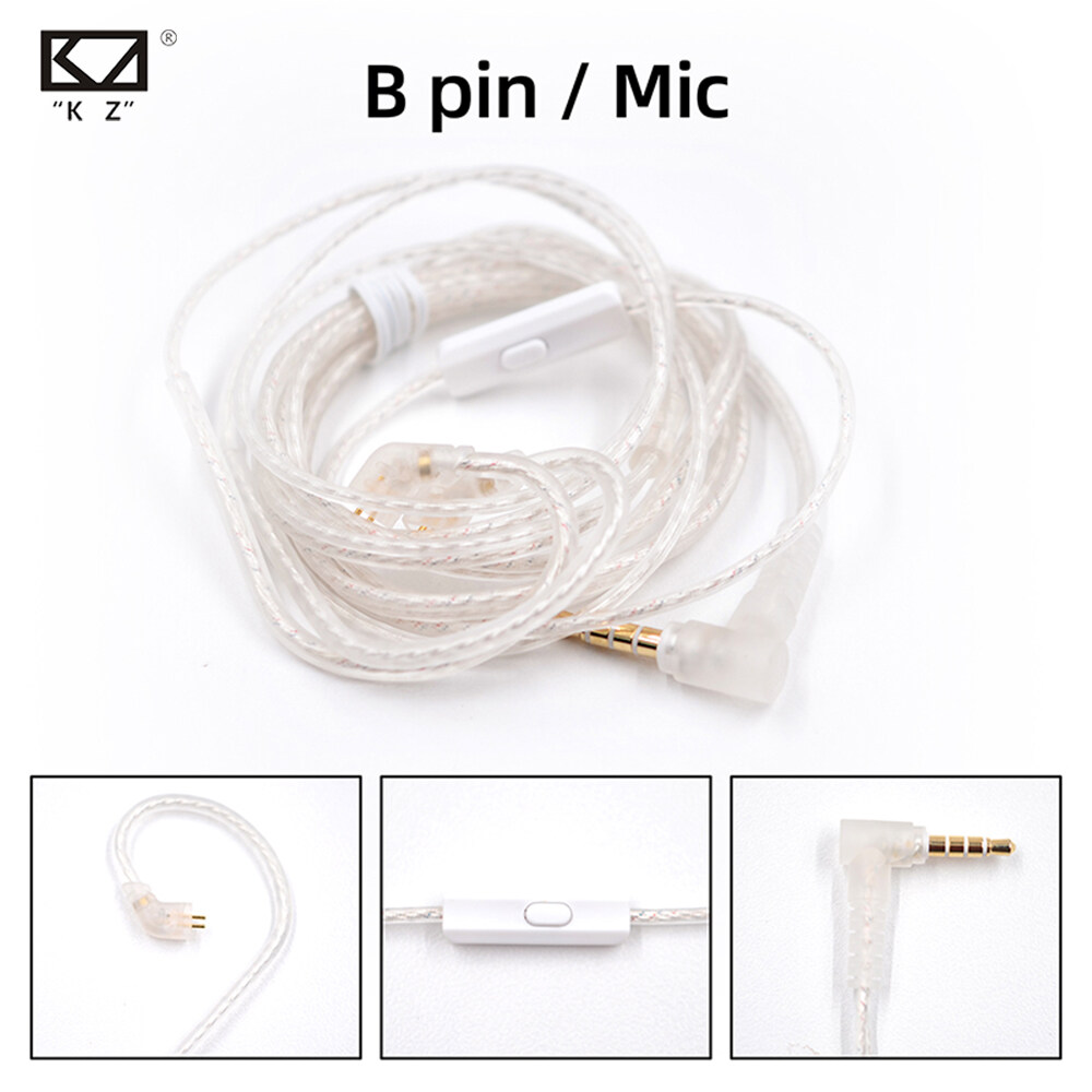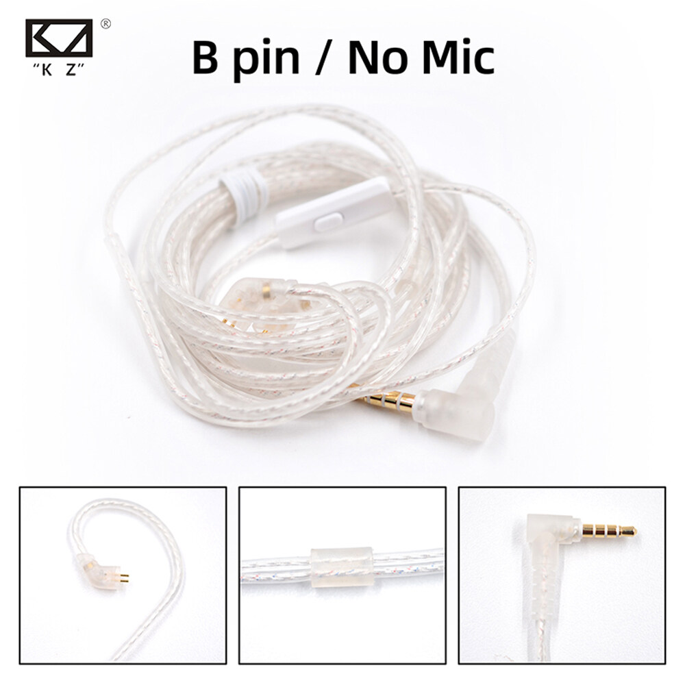 KZ ZSN Headphones Silver Plated Upgrade Cable 3.5mm 2PIN 0.75mm High Purity Oxygen Free Copper Silver-plated Earphone Wire Gold-plated Dedicated Cable Without /With Microphone For ZST ZS10 ZSN ZSX ZS6