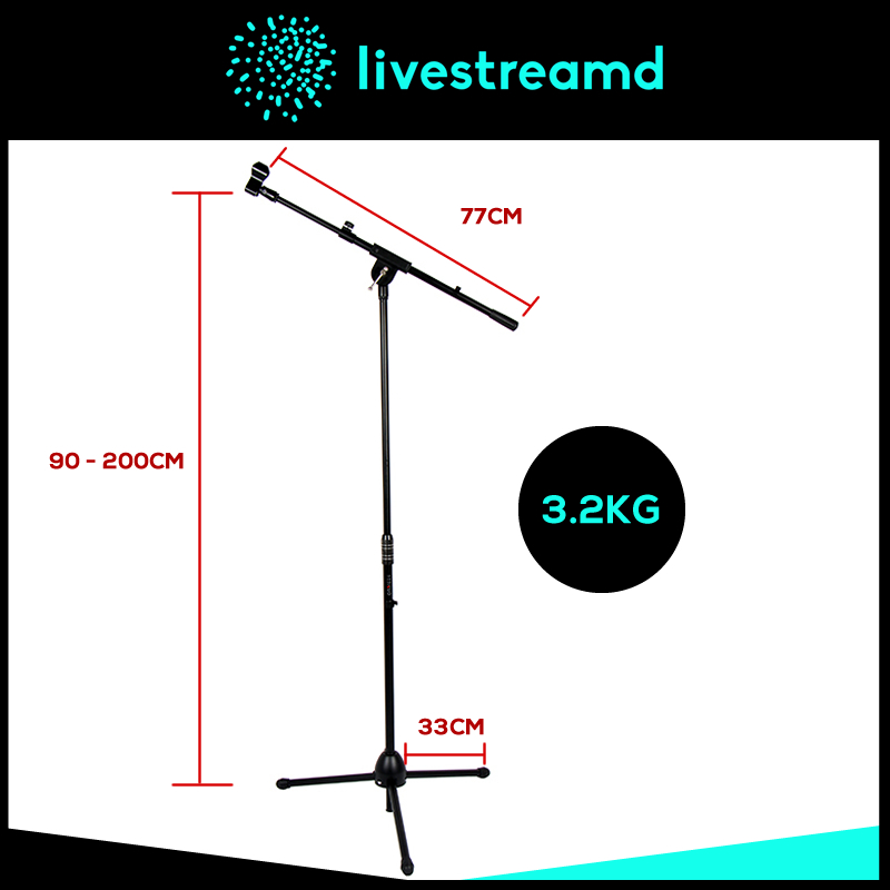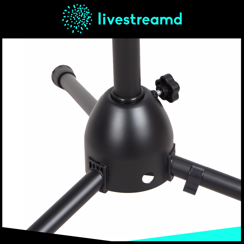 This professional microphone floor tripod stand is equippedwith a strong and sturdy tripod base with foldable legs.