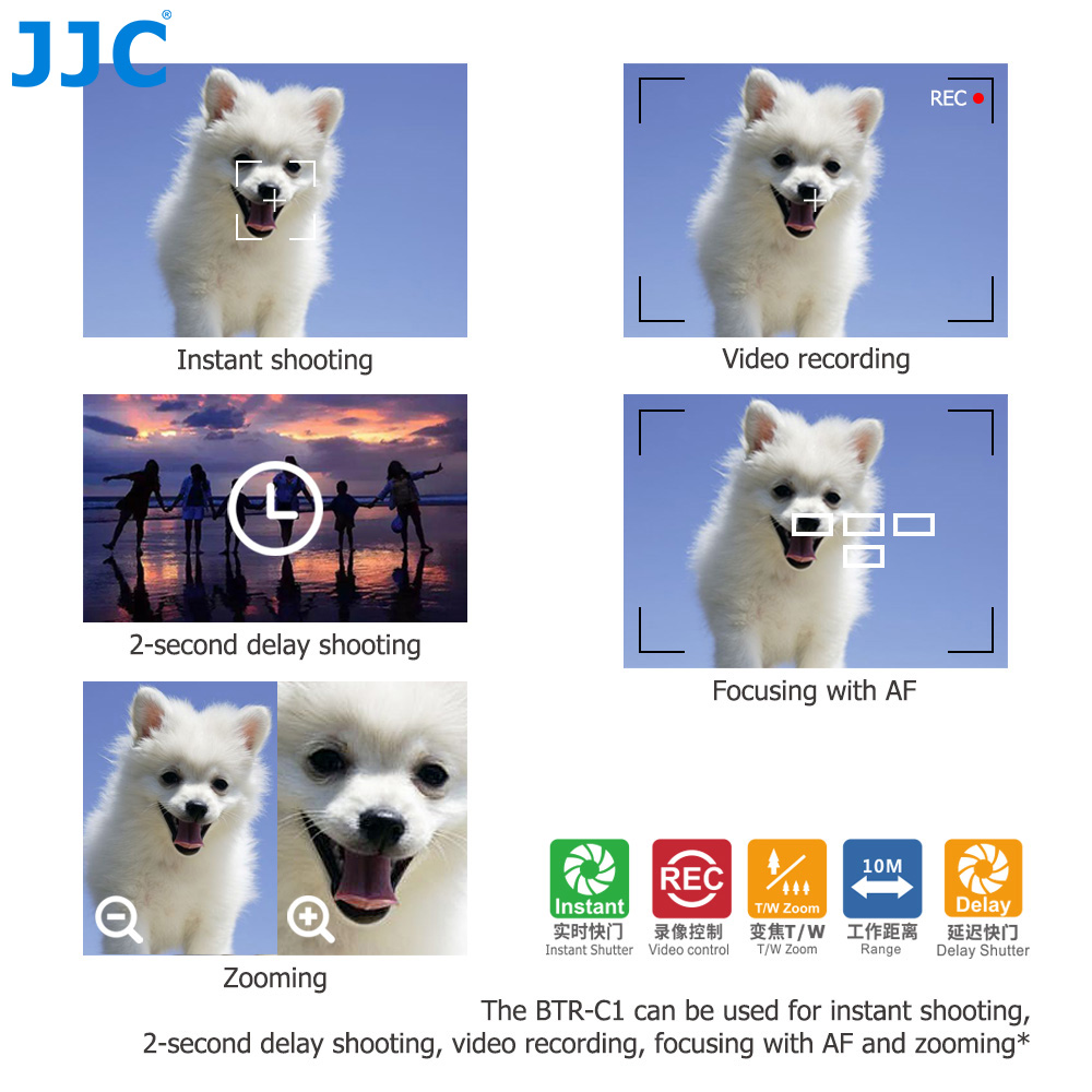 JJC BR-E1 Bluetooth Wireless Remote Control Shutter Release for Canon EOS R10 R7 R5C R3 R R5 R6 RP M50, M50 Mark II, 6D Mark II, M6 Mark II, M200, 90D 77D 200D II, 200D 850D 800D Powershot G7X Mark II