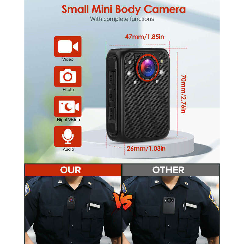【External Memory Card Up To 128GB:】 X1 portable human body camera uses external micro SD card storage to provide you with flexible storage space; supports external mirco SD cards up to 128G (this product does not include memory cards.)