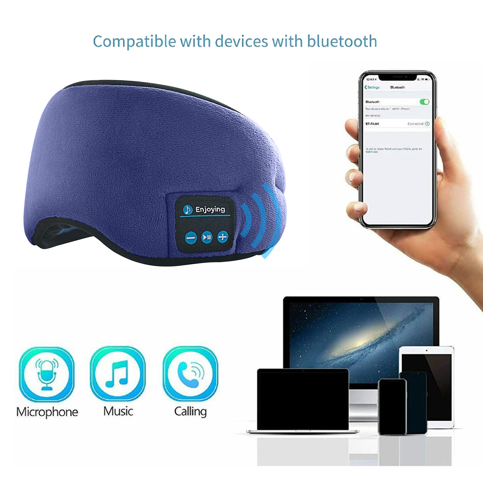 MOJOYCE Sleep Eye Mask Travel Bluetooth 5.0 Music Eye Cover Blackout Headband Black/Dark Blue/Coffee/Grey