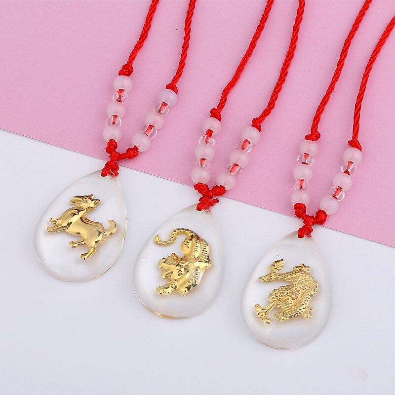 [RAYA STOCK] BAC 999 Gold Foil Chinese 12 Zodiac Cartoon Crystal Pendants /12 生肖水晶吊坠