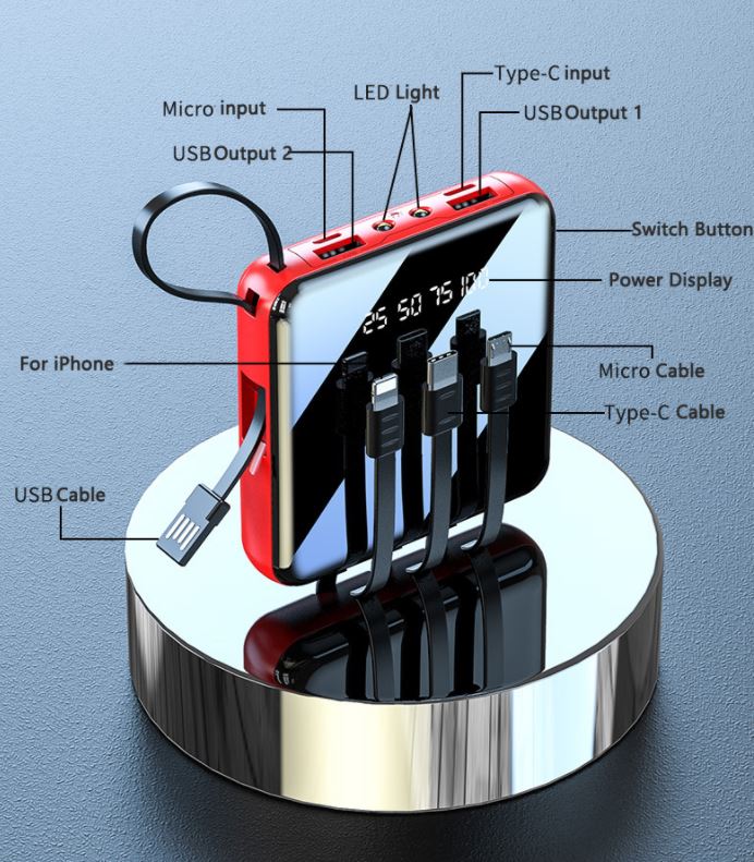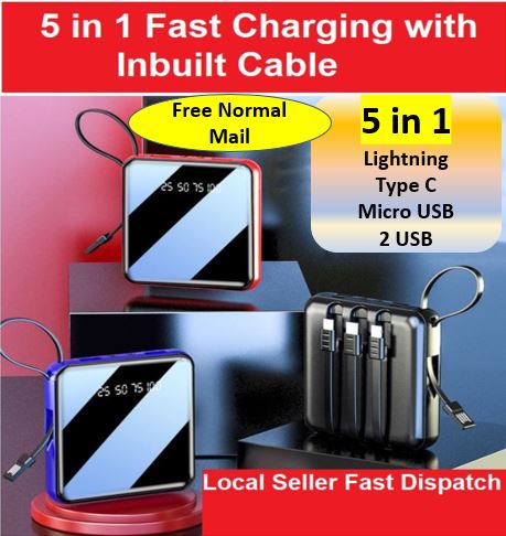 [Local SG Seller] Fast Charging Power Bank Inbuilt Cable Powerbank 20000 Mah 5 in 1 Compact Portable