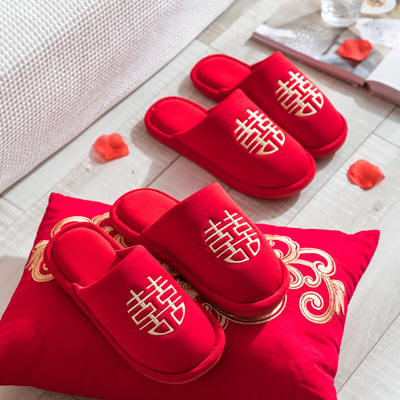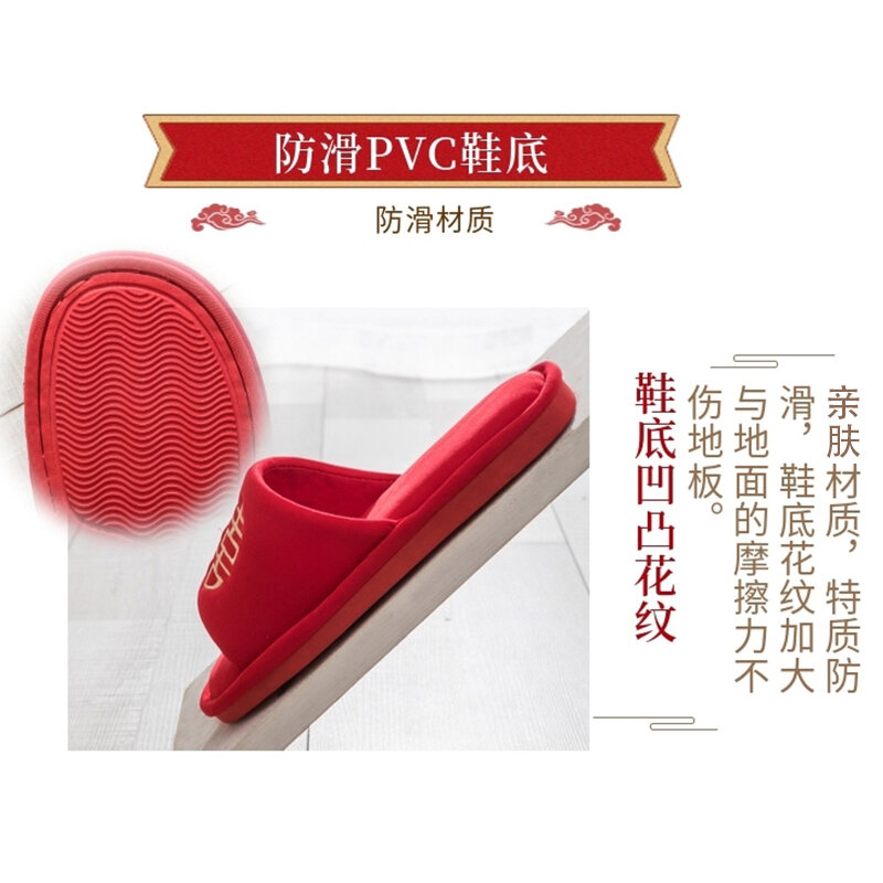 Wedding Slippers Festive Couple's Red Autumn and Winter Indoor Cotton Slippers Female Dowry Wedding Supplies