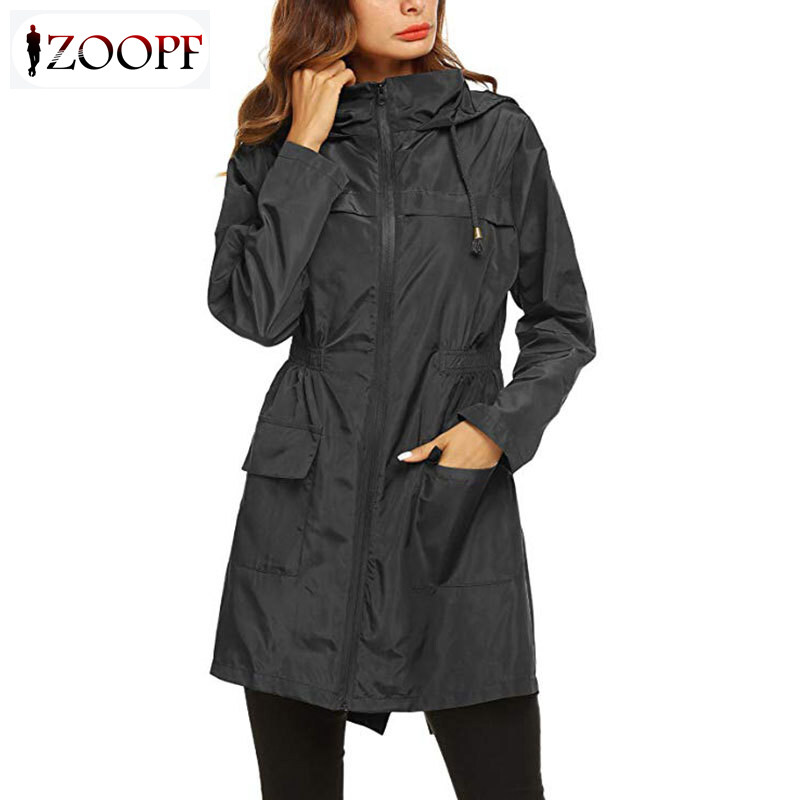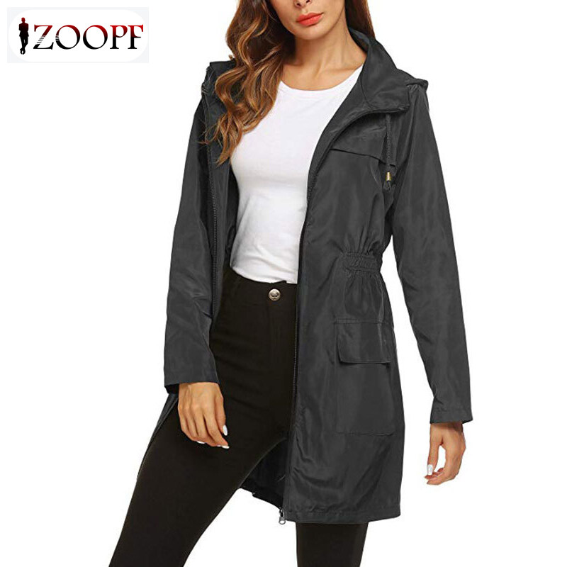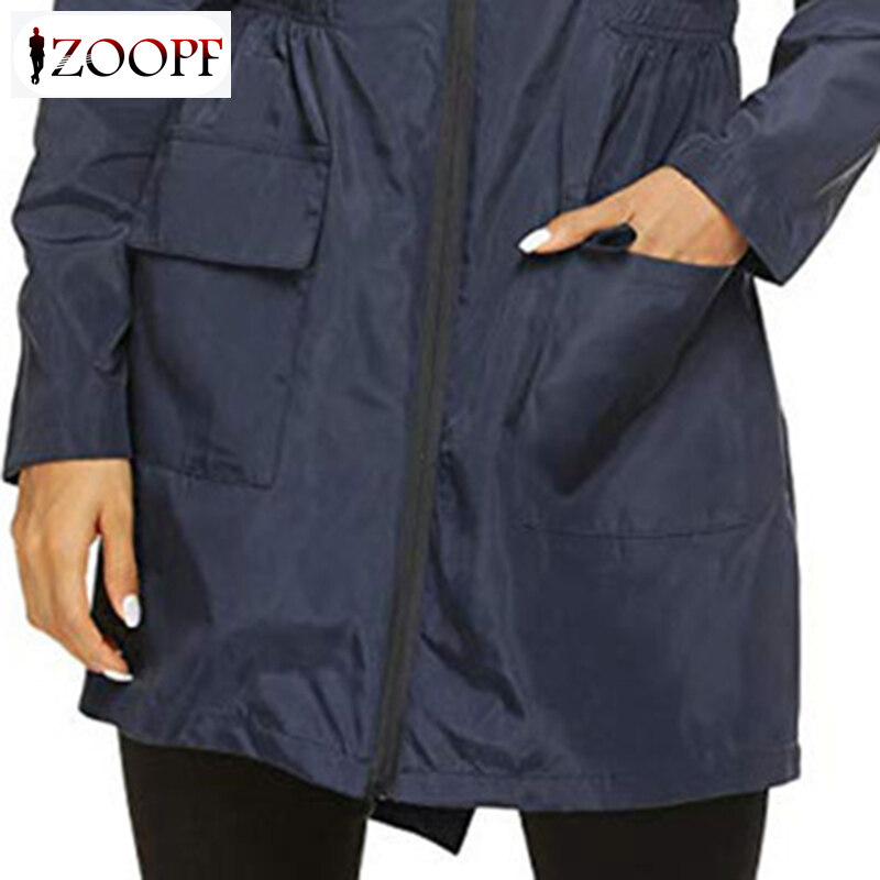 ZOOPF Women Zipper Hooded Raincoat Waterproof Quick-drying Breathable Windproof Long Coat