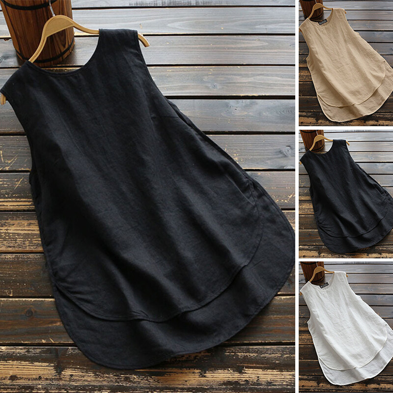 Muangee Women Plus Size Loose Solid Basic Plain Sleeveless Top Tee T Shirt Blouse ZANZEA