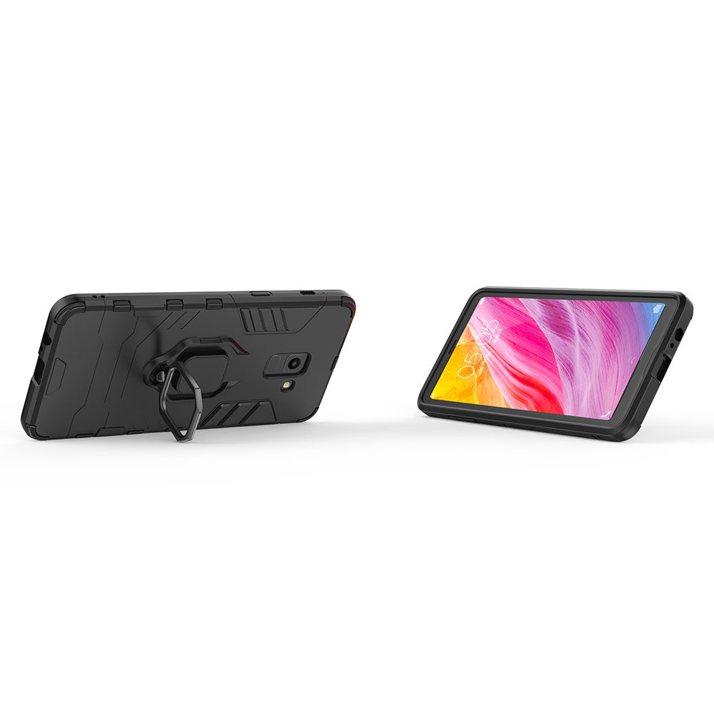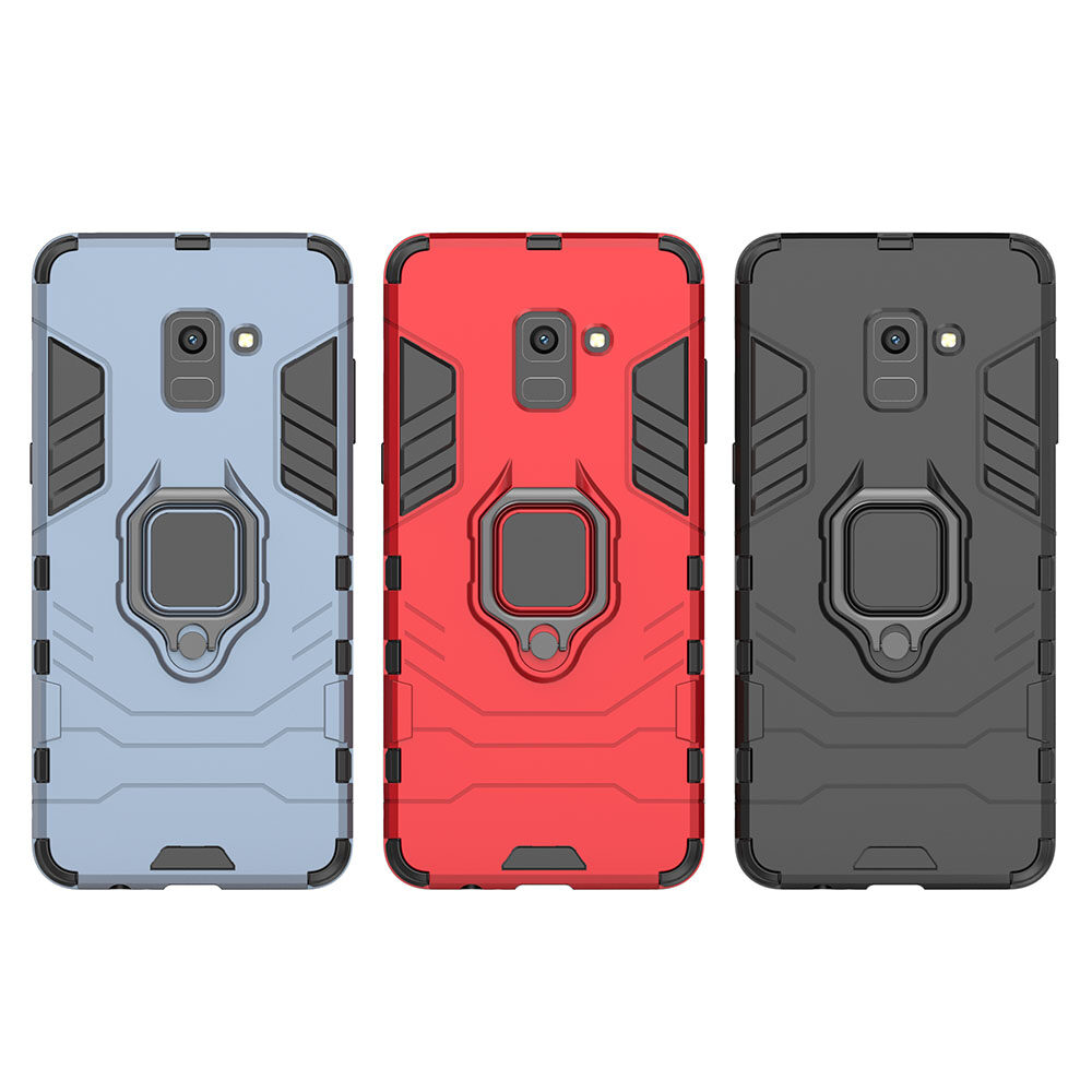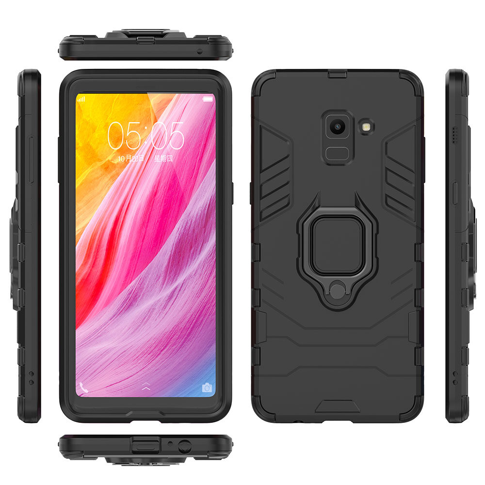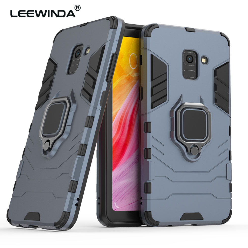 LEEWINDA For Samsung Galaxy A8 Plus 2018 Phone Case, Silicone TPU And Hard PC Luxury Armor Shockproof Metal Ring Holder Cover